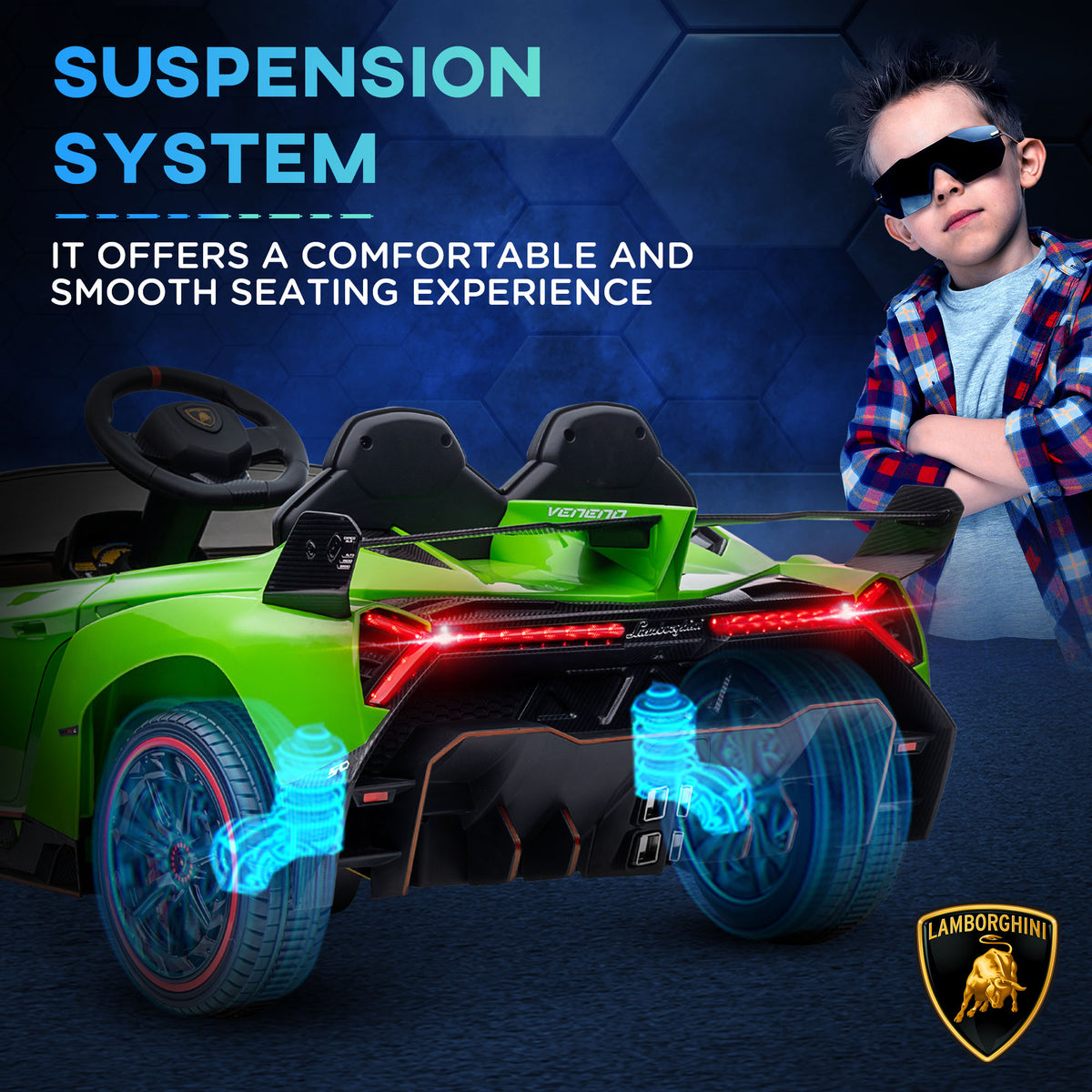 HOMCOM Lamborghini Veneno Licensed Electric Ride-On Car, with Remote, Music, Horn - Green - Green