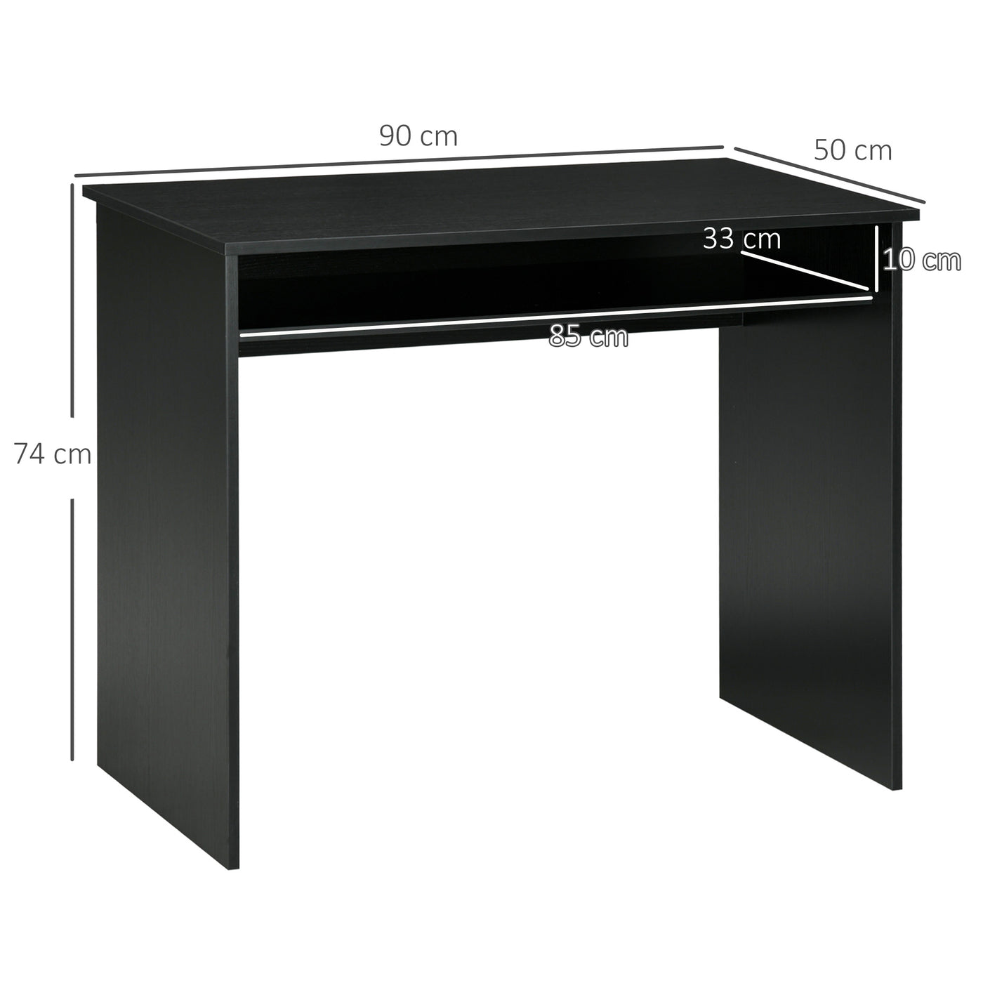 HOMCOM Modern Computer Desk, Home Office Table, Small Writing Desk with Storage Shelf, 90 x 50cm, Black Wood Grain - Black
