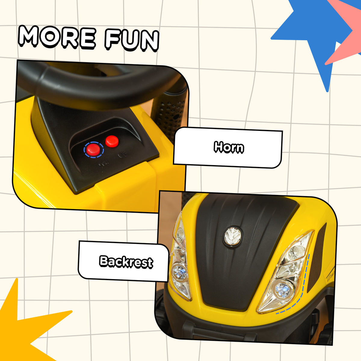 HOMCOM Ride On Tractor Toddler Walker Foot To Floor Slider w/ Horn Storage Steering Wheel for 1-3 Years Old Yellow - Yellow