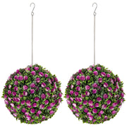 HOMCOM Set of 2 Decorative Artificial Plants, UV-protected Artificial Plant Topiary Rose Balls, Fake Plants for Home Indoor outdoor Decor, 28cm, Purple - Purple