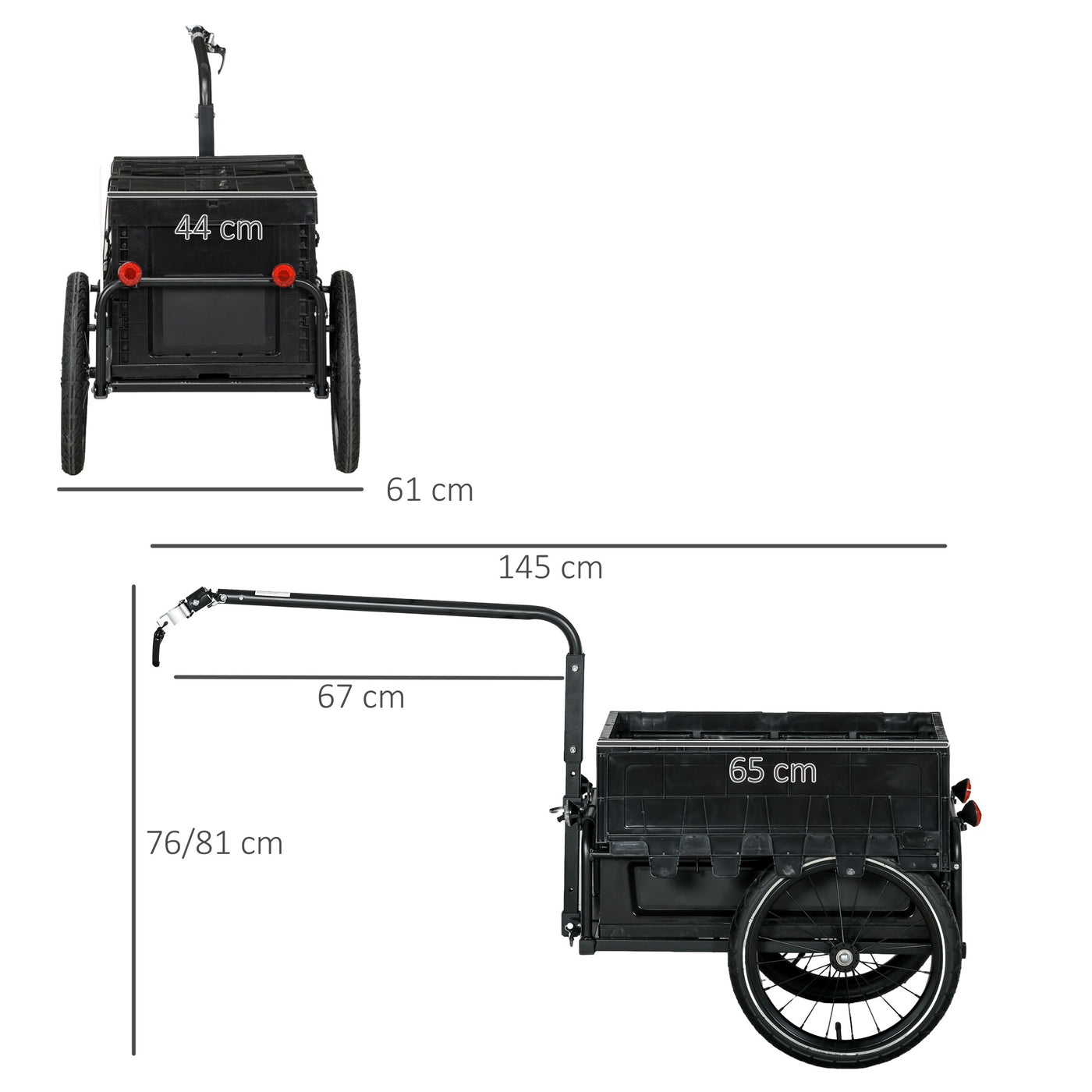 HOMCOM Steel Trailer for Bike, Bicycle Cargo Trailer with 65L Foldable Storage Box and Safe Reflectors, Max Load 40KG, Black - Black