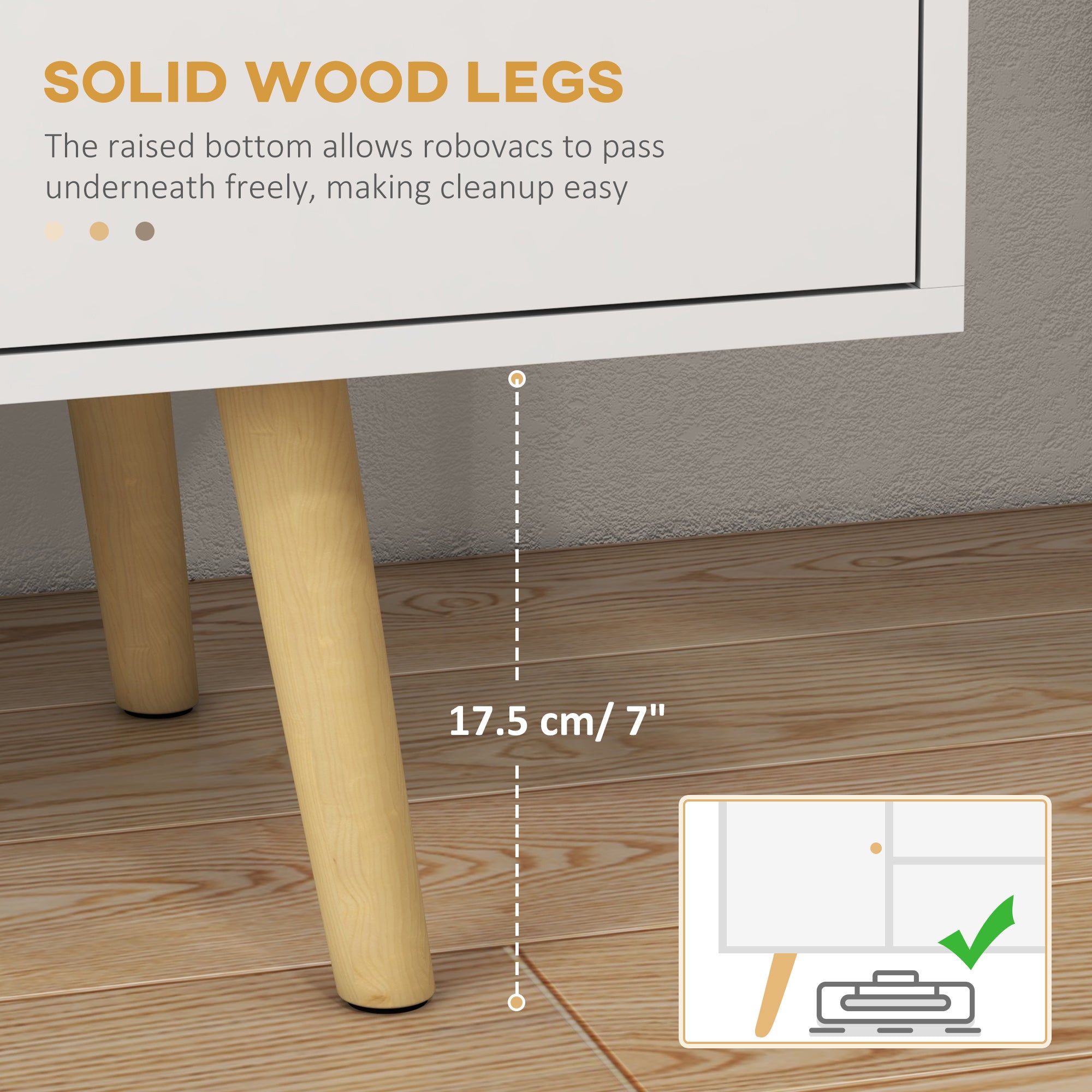 HOMCOM TV Stand Cabinet up to 55 Inches, TV Unit with Storage Shelves and Wood Legs for Living Room, Bedroom, White - White
