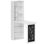 HOMCOM Wall Mounted Computer Desk, Folding Study Table with Black Board and Bookshelf, Multifunctional Floating Writing Desk for Home Office, White - White