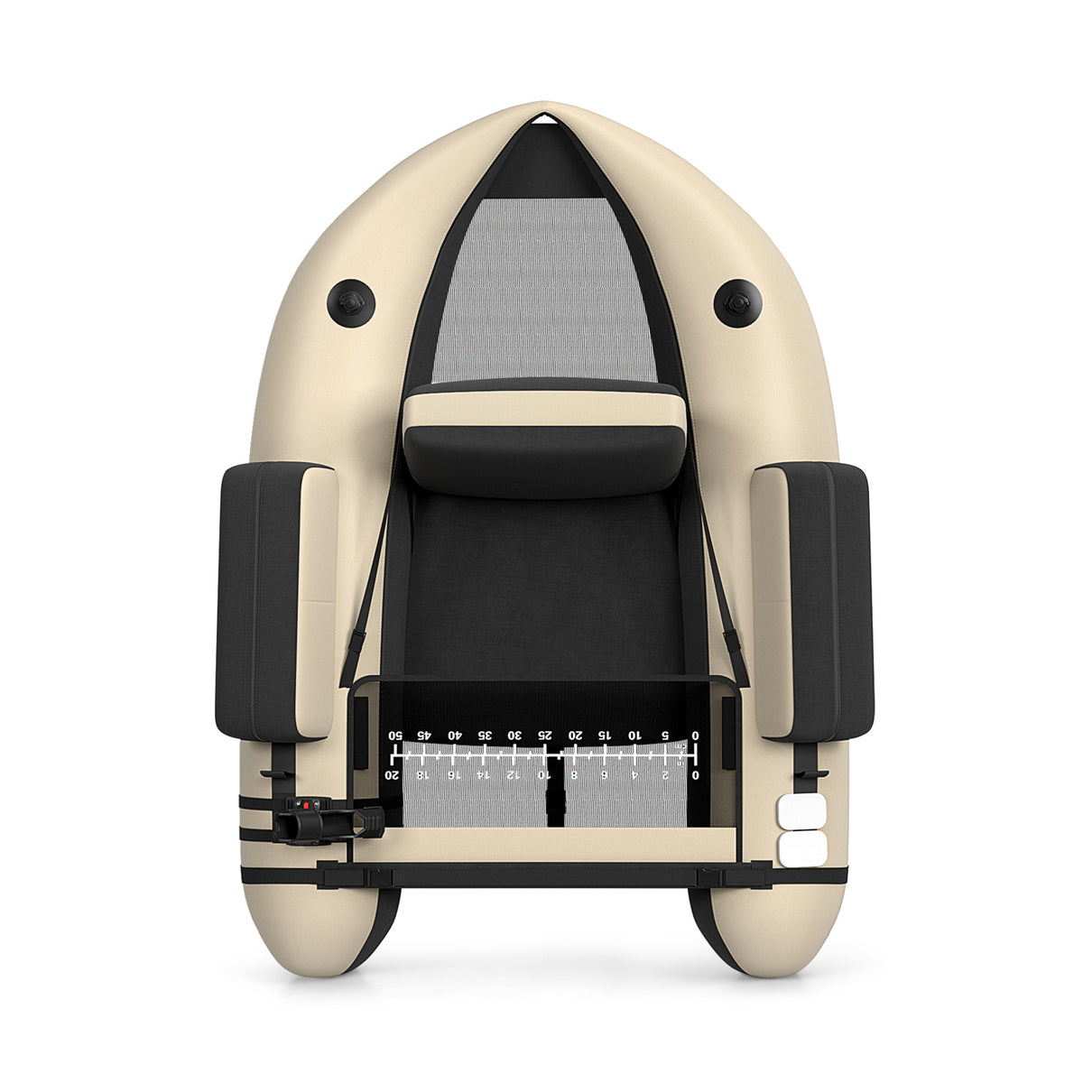 Inflatable Fishing Float Tube with Pump, Paddle, Storage Pockets-Beige