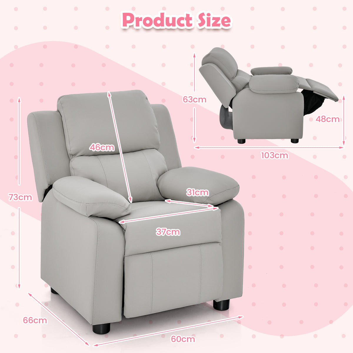 Kids Recliner Chair with Adjustable Backrest and Footrest-Light Grey
