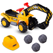 Kids Ride on Digger with Safety Helmet and Toy Stones