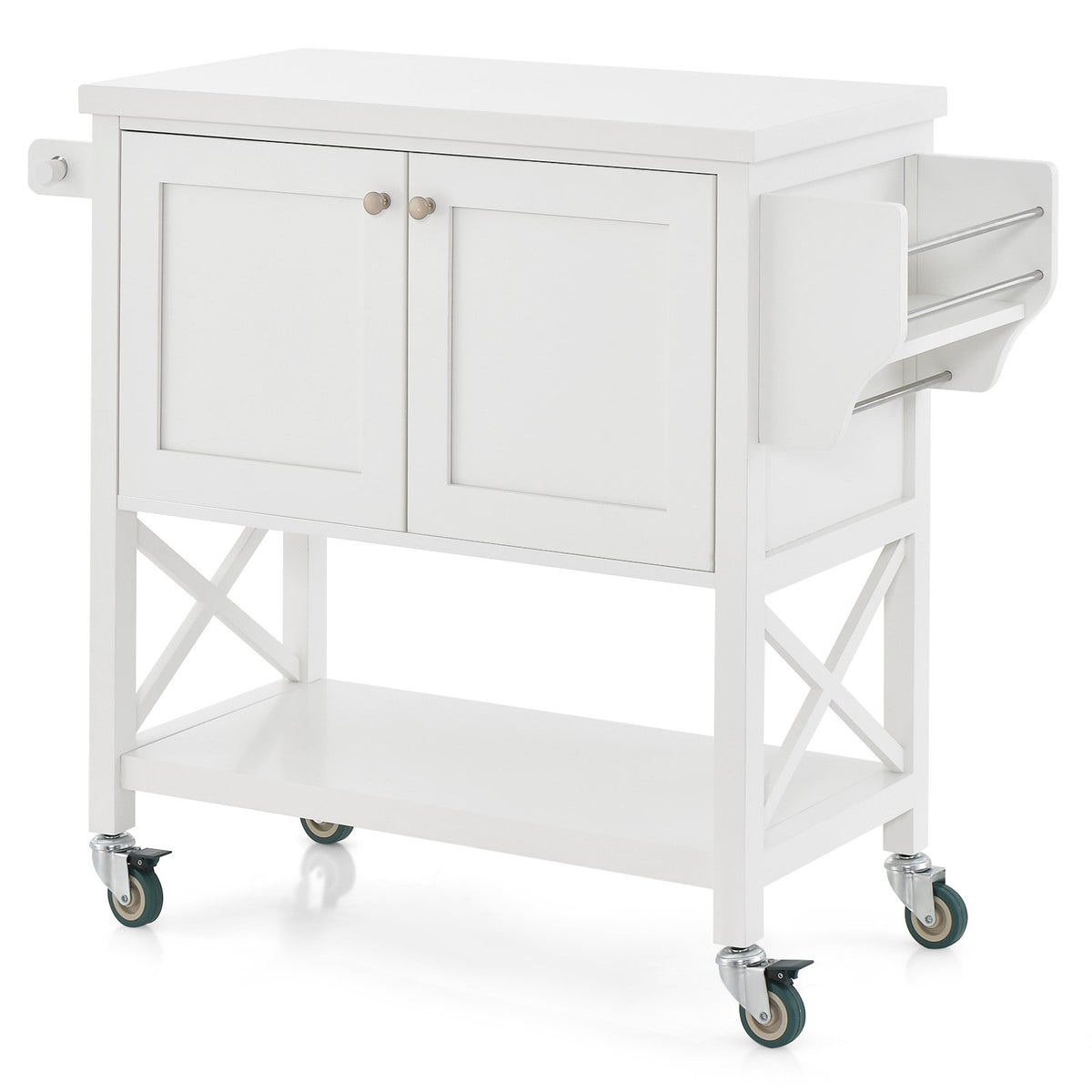 This kitchen rolling cart offers ample storage space with its wide countertop, cabinet with doors, towel rack, and spice rack. Its versatile design seamlessly blends into any decor style, making it suitable for various places such as the kitchen, dining room, or living room. The cart can be effortlessly moved with its 4 universal wheels, 2 of which have locks for added stability. Its premium material and sturdy frame ensure durability, allowing you to store heavy items without worrying about tipping. Assembly is easy, and cleaning is a breeze thanks to the waterproof countertop and soft close hinge spice rack. Keep your kitchen organized with this functional and stylish storage solution. If you are looking for a kitchen rolling cart like this, do not hesitate to place an order! Ample Storage Space: This kitchen rolling cart comes with a wide countertop, a big cabinet with doors, a towel rack and a spice rack, providing plenty of room to store all your kitchenware, dinnerware, glassware, wine bottles, and seasonings. Versatile Application: This storage unit is designed to seamlessly blend with any decor style, adding functionality and style to your space. It is suitable for various places, including your kitchen, dining room, and living room. Easy Movement Design: Effortlessly move this storage cart with 4 universal wheels, 2 of which have locks. The 360° rotation feature ensures smooth maneuverability, allowing you to position it wherever it's needed. Lock it in place for added stability. Premium Material and Sturdy Frame: Made of high-quality MDF board, this storage cart is built to last. The sturdy frame ensures stability and durability, so you can confidently store heavy items without worrying about the unit tipping over. Easy to Assemble and Clean: With the easy assembly process, you'll have this storage cart ready to use in no time. Cleaning is a breeze thanks to its waterproof countertop and soft close hinge spice rack. Keep your kitchen looking tidy effortlessly.