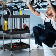 This 3-layer cart boasts ample storage and well-divided panels with bottle holders, accessory organizers and tool compartments for easy sorting. And the side holes are perfect for tools like screwdriver. The heavy-duty metal structure ensures stability, while the PP shelves withstand long-time use. Moreover, the smooth-control wheels, 2 of which are lockable, and ergonomic handle provide easy maneuverability. Perfect for use in garages, hotels, salons and more, this versatile cart is ideal for a variety of tasks. Keep your workspace tidy and your tools easily accessible with this multi-functional organizer. Detailing Tool Organizer: Each shelf is designed with bottle holders, accessory organizers, tool storage compartments and side hanging holes to make it easy to sort your items. Therefore, this tool cart with 3-layer ample storage will make all your tools well-organized and improve work efficiency. High-Strength Structure: This detailing tool cart is firmly supported by heavy-duty metal pipes which are anti-deformation and designed with tightened connection. And each panel is made of superior PP for long-lasting use. Smooth-Control Wheel: The 4 universal wheels are easy to change the direction, and the ergonomic padded handle is cozy to grip, so you can move the cart freely even in narrow space. And 2 of wheels are lockable to ensure the cart to be safely parked in place for your use. Multi-Occasion Use: This versatile push cart can be used as repair cart, cleaning cart, makeup cart, art supply storage cart in different places like garage, hotel, barber’s shop, beauty salon, bathroom and so on. Easy Assembly: With an easy-to-follow instruction and complete accessories, the tool cart can be assembled with higher efficiency. And the corners are rounded for higher safety.