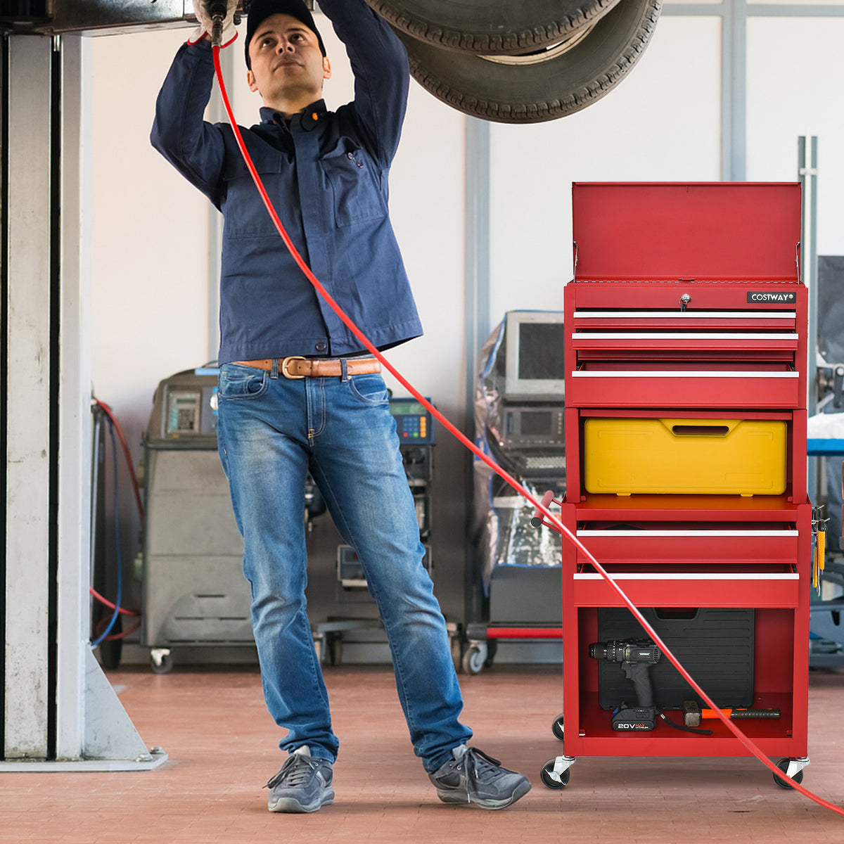 Lockable Tool Storage Cabinet with Handle, Drawers, Wheels and EVA Liner-Red & Black