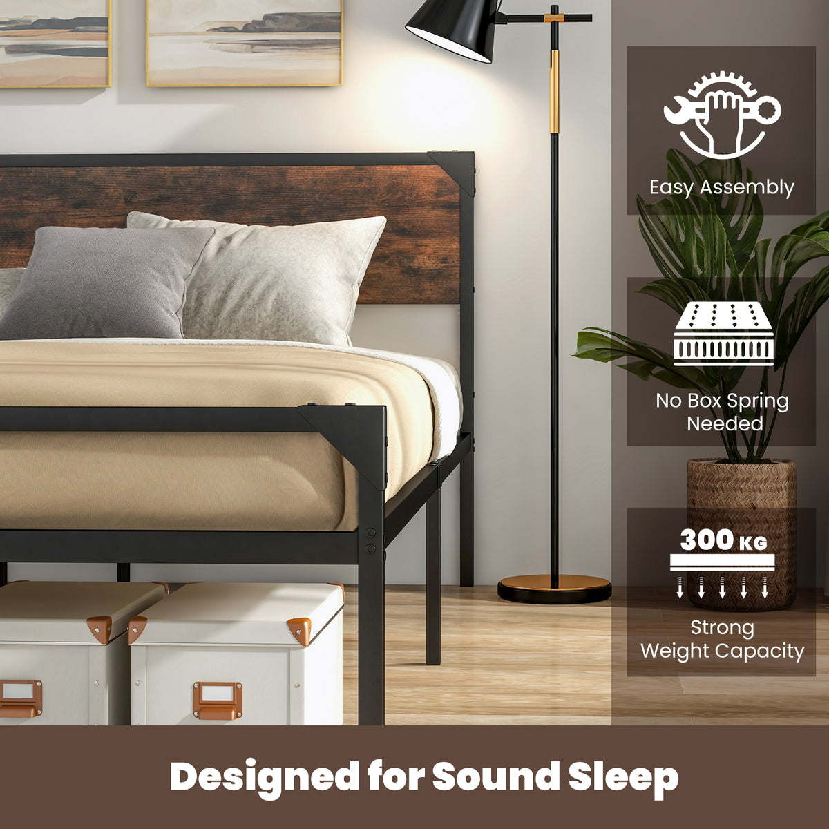 Experience ultimate style, strength, and convenience with this sleek and robust metal bed frame, complete with a chic headboard! Crafted...