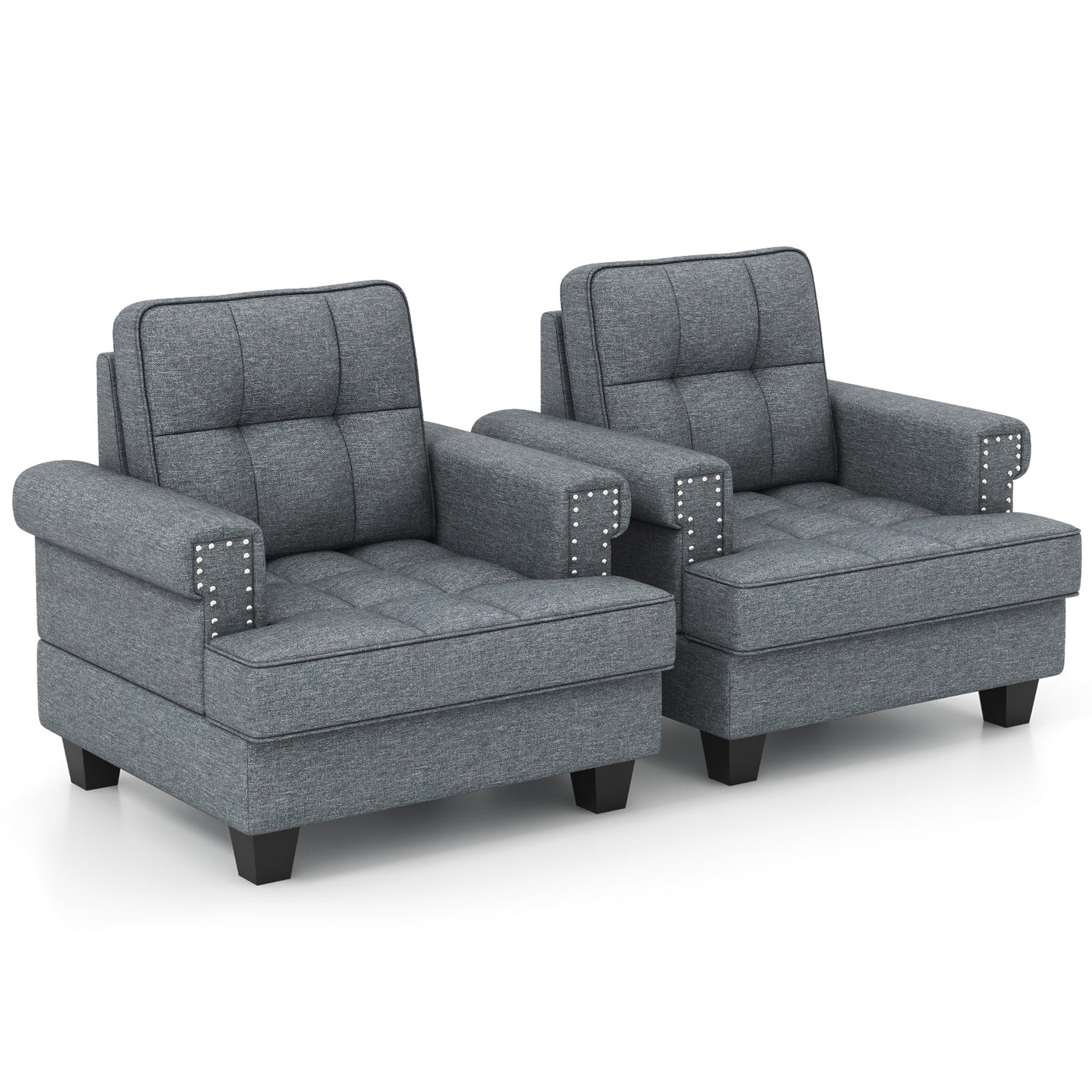 Mid-century Modern Accent Armchair Tufted Linen Club Chair with Extra Pillow-Gray