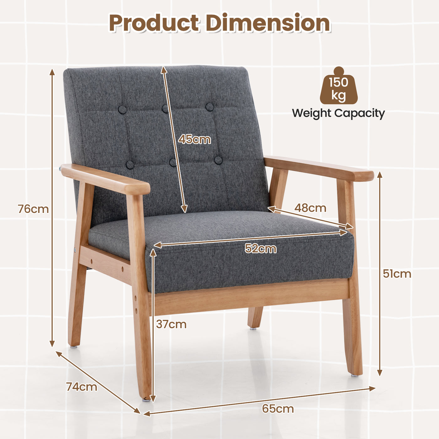 Mid-century Modern Accent Chair with Breathable Linen Cloth-Grey