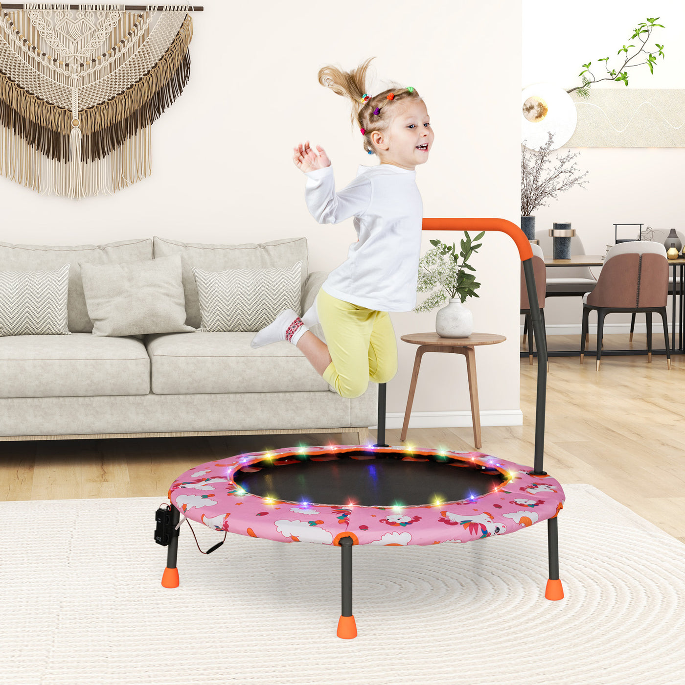 Mini Trampoline for Children with LED Lights and Safety Handle-Pink