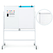 Mobile Whiteboard Reversible with Grid Pattern Board and Board Eraser-White