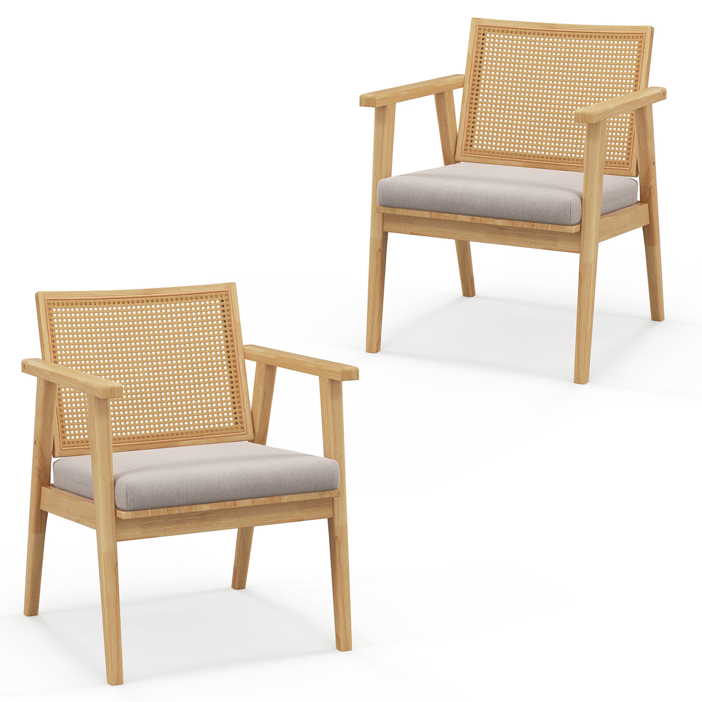 Colour: Natural Material: Rubber Wood, Sponge Overall Dimension: 59 cm x 56 cm x 77 cm (L x W x H) Cushion Dimension: 50 x 48 x 7cm (L x W x H) Weight Capacity of Each Chair: 120 kg Net Weight of 2 Chairs: 17 kg Box Qty:1(May vary by batch)Package includes: 2 x Armchairs 1 x Instruction Manual