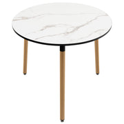 Enjoy every delicious meal at this round dining table. Made of premium MDF, this round side table is durable and sturdy. The tabletop with faux marble patterns are pretty to use. Moreover, the rustproof steel legs support the round dining table firmly. Meanwhile, the adjustable non-slip foot pads increase stability and protect the floor. The round edges ensure children's safety. With a modern and simple design, this round end table is suitable for the dining room, living room, balcony, etc. Furthermore, it is easy to put together with an illustrated user's manual. And the smooth and water resistant surface allows you to clean it easily. Faux Marble Tabletop: Made of high quality MDF with faux marble pattern, the tabletop has a strong load bearing of 70 kg. In addition, the tabletop is anti-scratching and fade resistant for a long-lasting use. At the same time, the spacious tabletop allows you to put essentials on it for easy access. Sturdy Construction: The faux marble round dining table is firmly supported by 3 sturdy legs for a stable performance. More importantly, all screws are rustproof and tightly connected to enhance stability. And the bottom triangular structure renders the round dining table more stable when it is in use. Considerate Designs: With the adjustable non-slip foot pads, this faux marble round side table can not only adapt to uneven grounds but also protect your floor from scratching. Furthermore, the round edges will protect your kids' delicate skin and avoid hurting them when bumping it accidentally. Versatile Appearance: This modern round dining table features an elegant appearance that fits various places, such as living room, bedroom, dining room, balcony and others. Therefore, you can use it as a dining table, coffee table, side table or end table in order to gratify your different requirements. Simple Assembly and Maintenance: Coming with an illustrated instruction and all needed accessories, this faux marble dining table is not very hard to install. What's more, the waterproof and smooth surface makes it easy to clean it with a soft rag for great convenience.