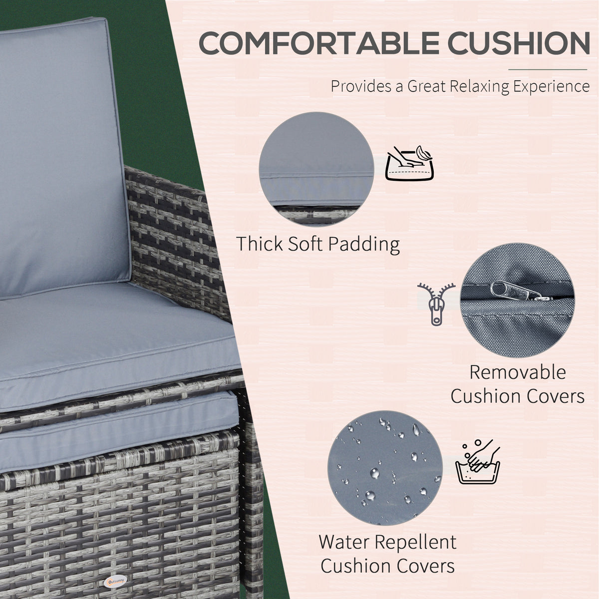 Outsunny 10 Seater Rattan Cube Garden Furniture Set with Parasol Hole, Rattan Dining Set with Cushions, Outdoor Dining Table and Chairs with Rectangular Glass Top Table for Patio, Mixed Grey - Grey