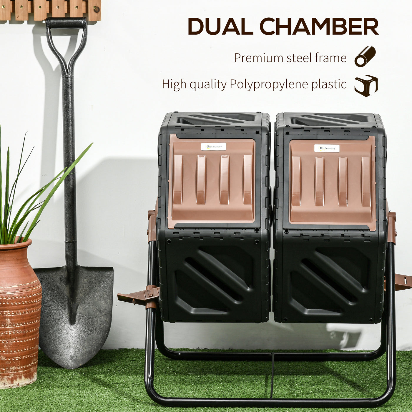 Outsunny 130L Double Chamber Composter - Black - Dark Brown, Black