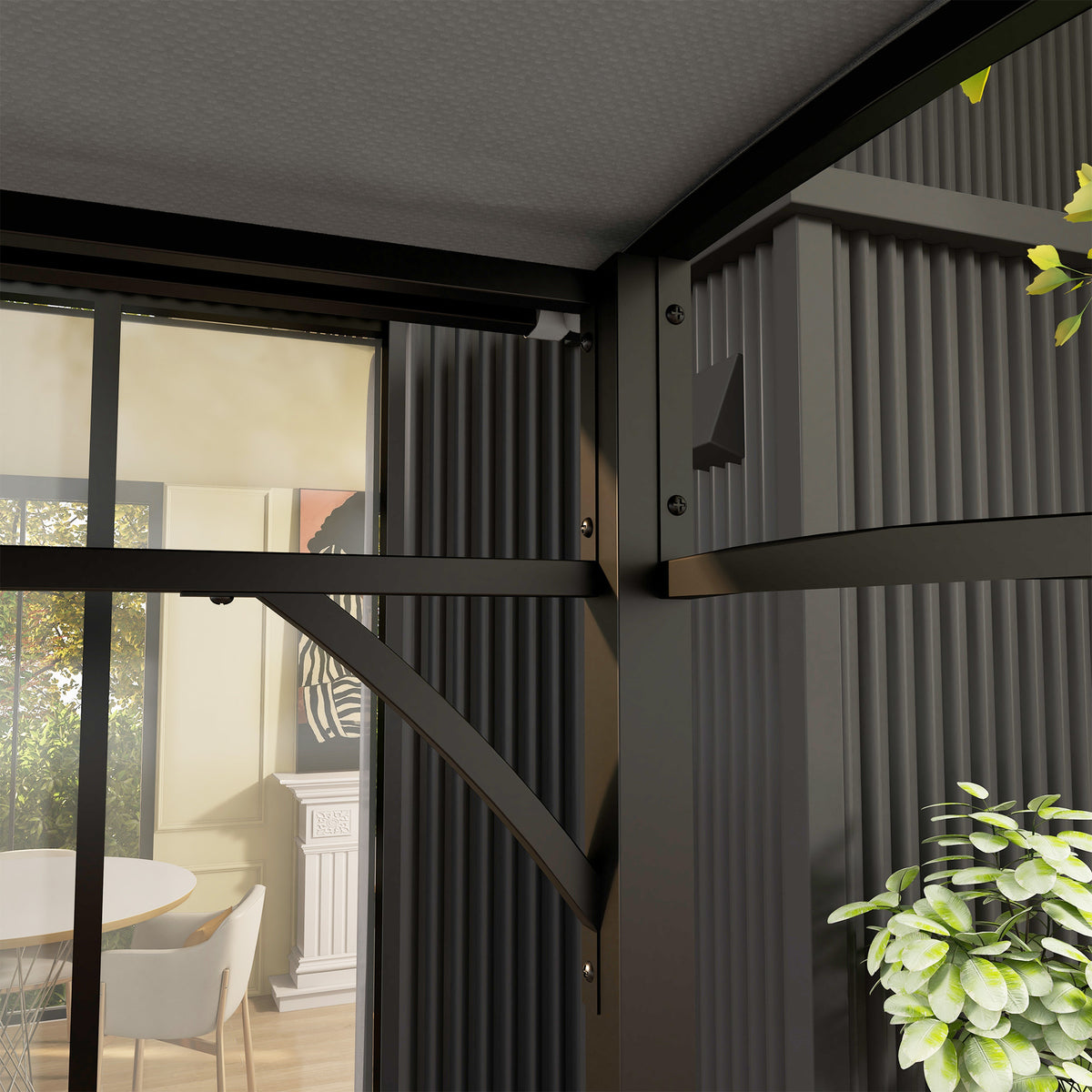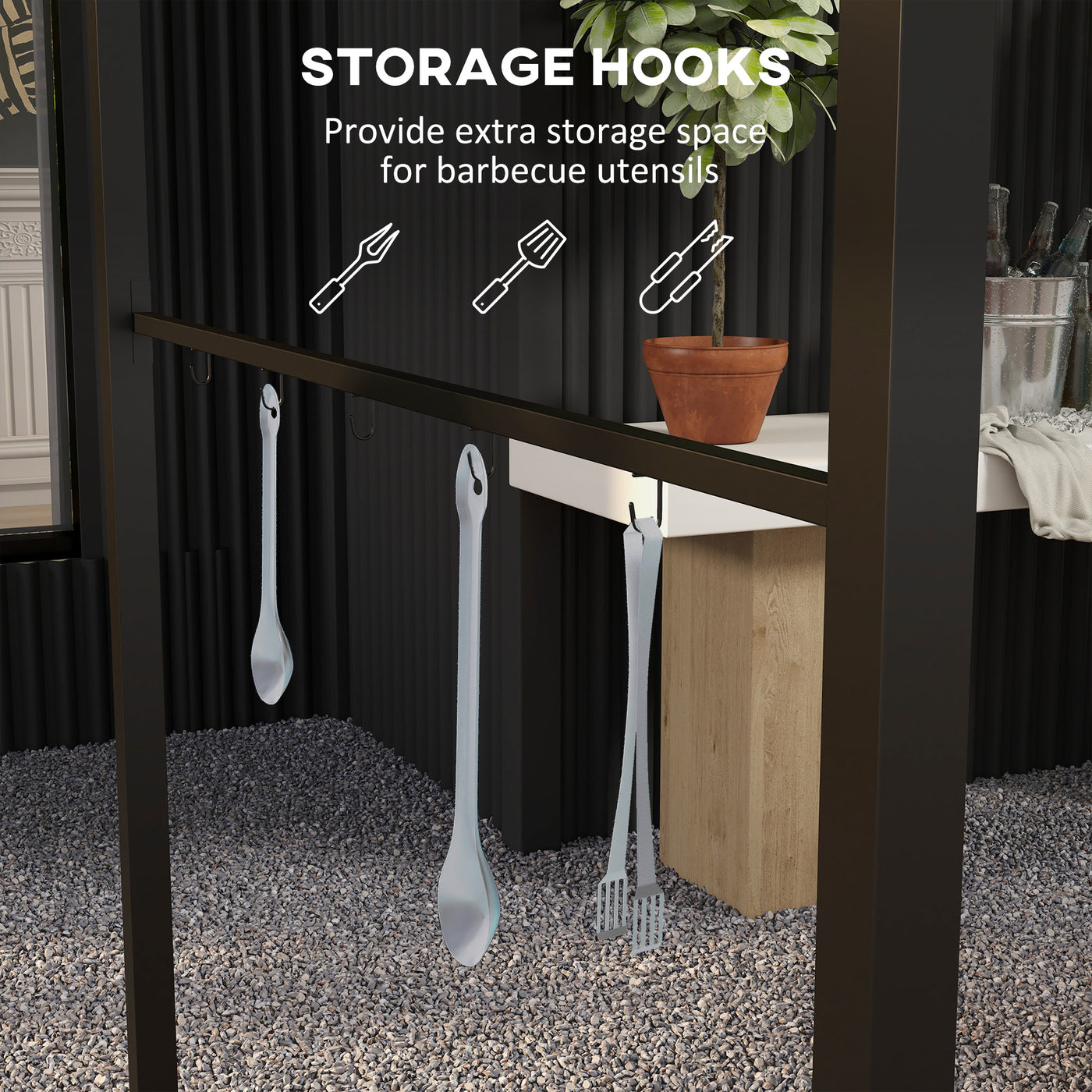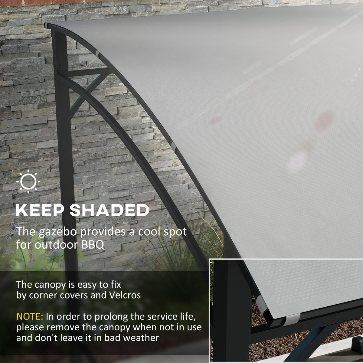 Outsunny 2.2 x 1.5 m BBQ Grill Gazebo Tent, Garden Grill with Metal Frame, Curved Canopy and 10 Hooks, Outdoor Sun Shade, Grey - Grey