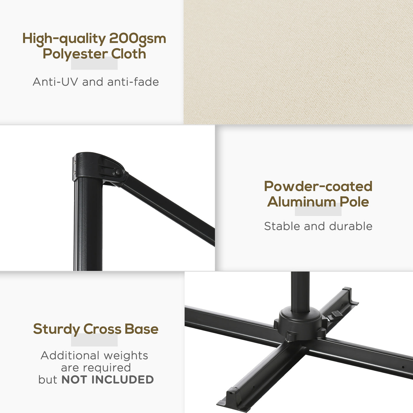 Outsunny 2.5 x 2.5m Patio Offset Parasol Umbrella Cantilever Hanging Aluminium Sun Shade Canopy Shelter 360° Rotation with Crank Handle and Cross Base, Cream White - Cream