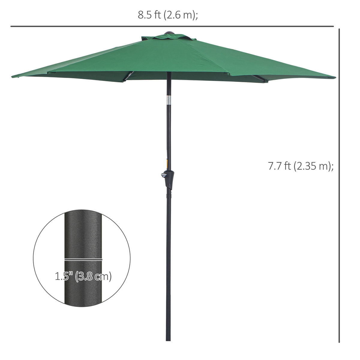 Outsunny 2.6M Garden Parasol Umbrella with Tilt and Crank, Outdoor Sun Parasol Sunshade Shelter with Aluminium Frame, Green - Green
