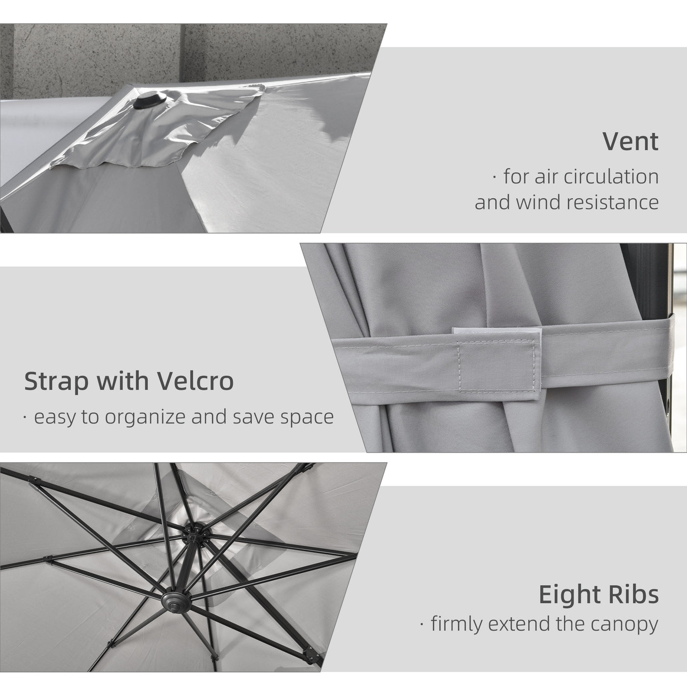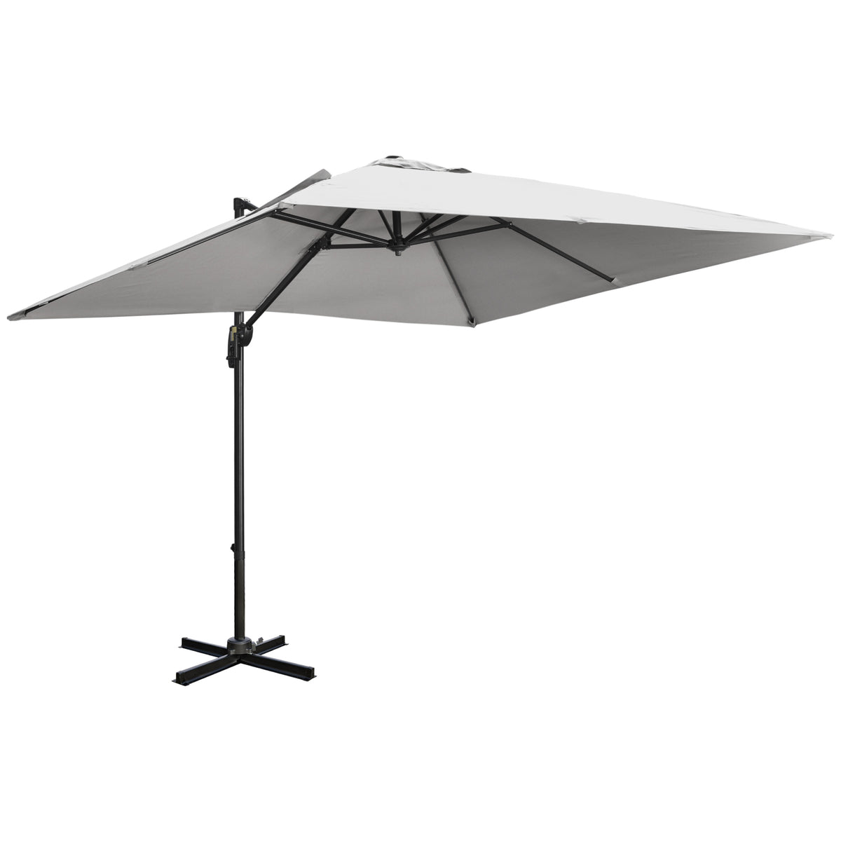 Outsunny 2.7 x 2.7 m Cantilever Parasol, Square Overhanging Umbrella with Cross Base, Crank Handle, Tilt, 360° Rotation and Aluminium Frame, Grey - Grey