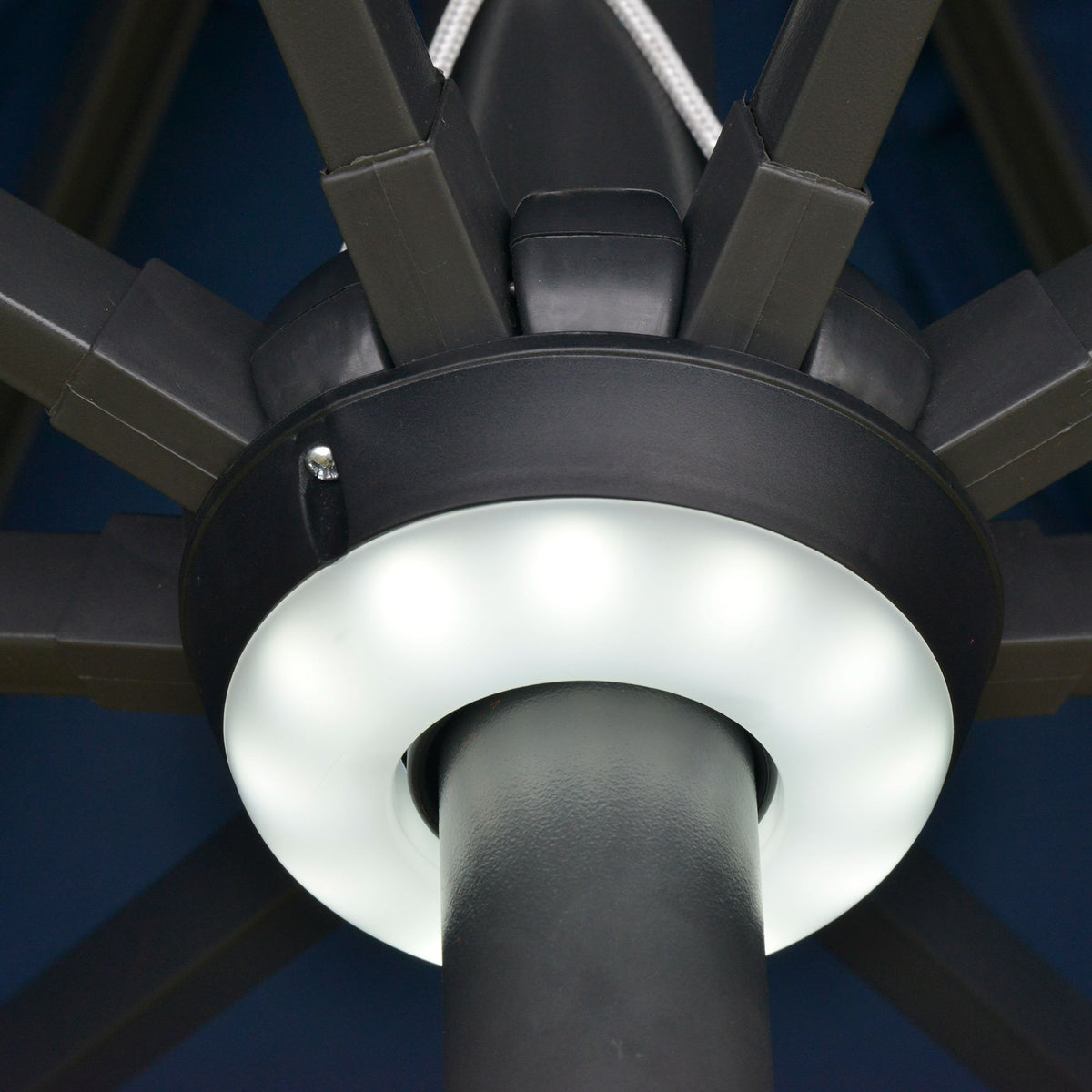 Outsunny 2.7m Garden Parasol Sun Umbrella w/ LED Solar Light Angled Canopy Blue - Blue