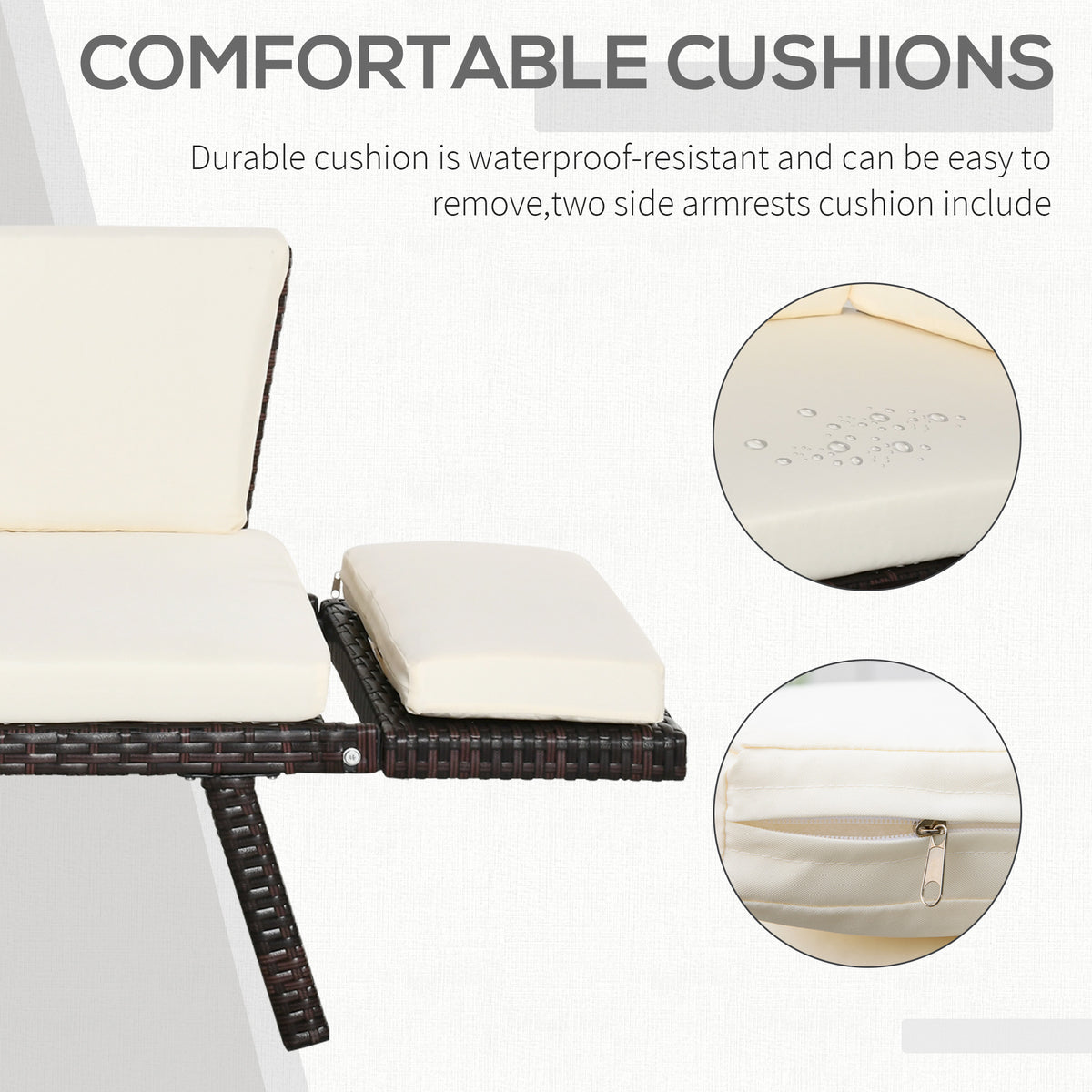 Outsunny 2-Seater 2-in-1 Rattan Convertible Sofa Daybed Brown - Brown,Cream White
