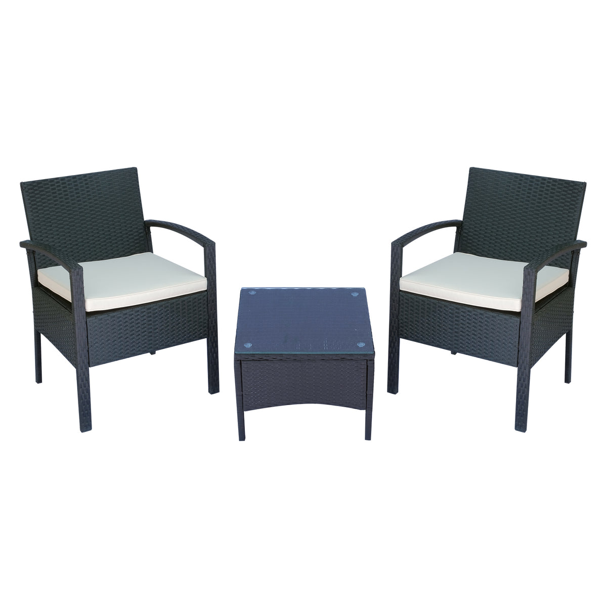 Outsunny 2 Seater Rattan Bistro Set, Steel-Black - Black
