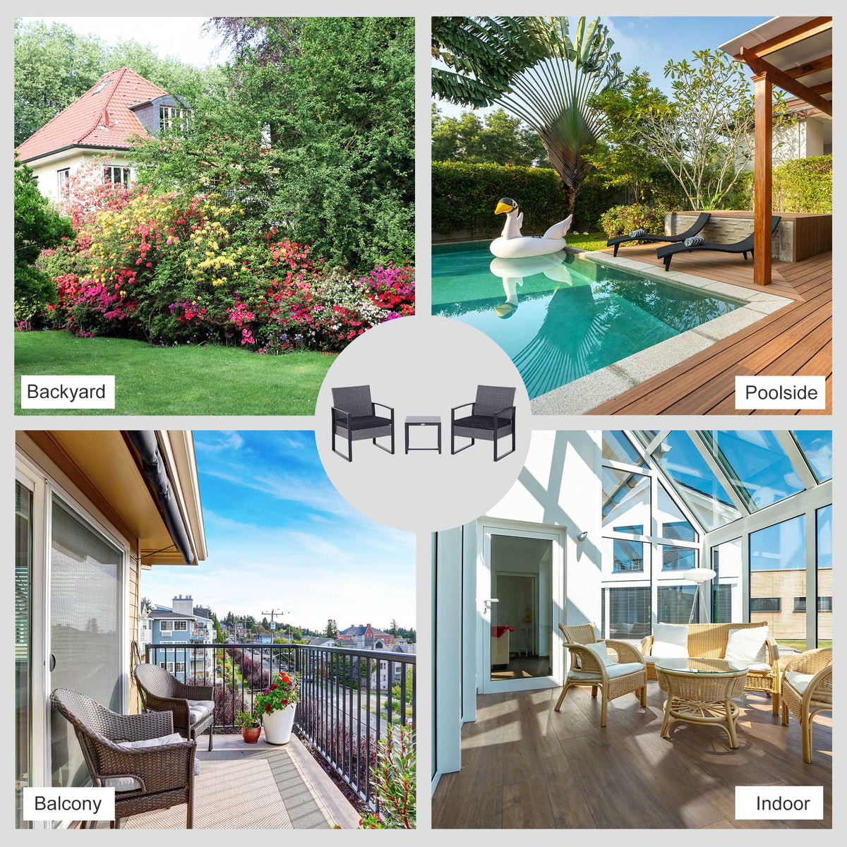 Outsunny 2 Seater Rattan Patio Set W/ Cushions-Grey/Black