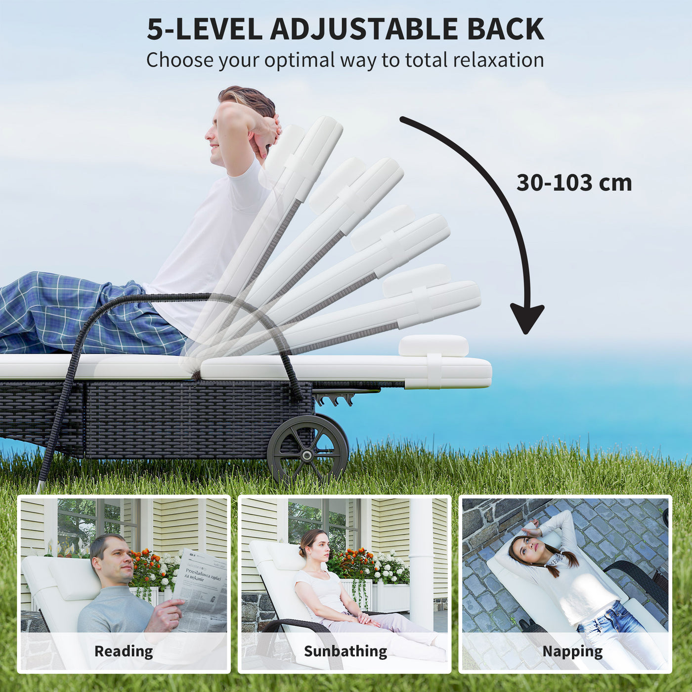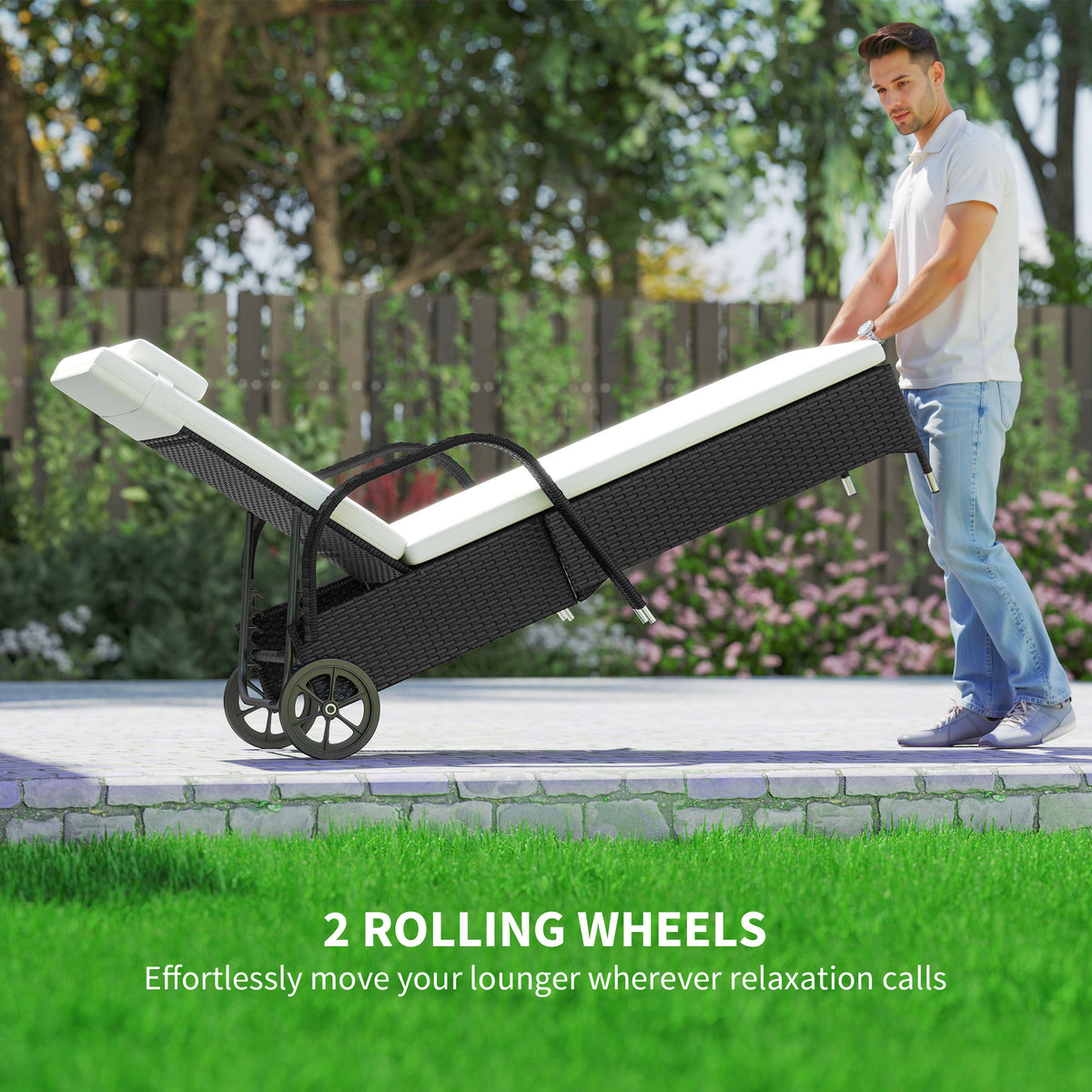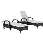 The rattan patio chaise lounge set from Outsunny comes complete with 2 loungers, 1 side table and cushions. The seat...