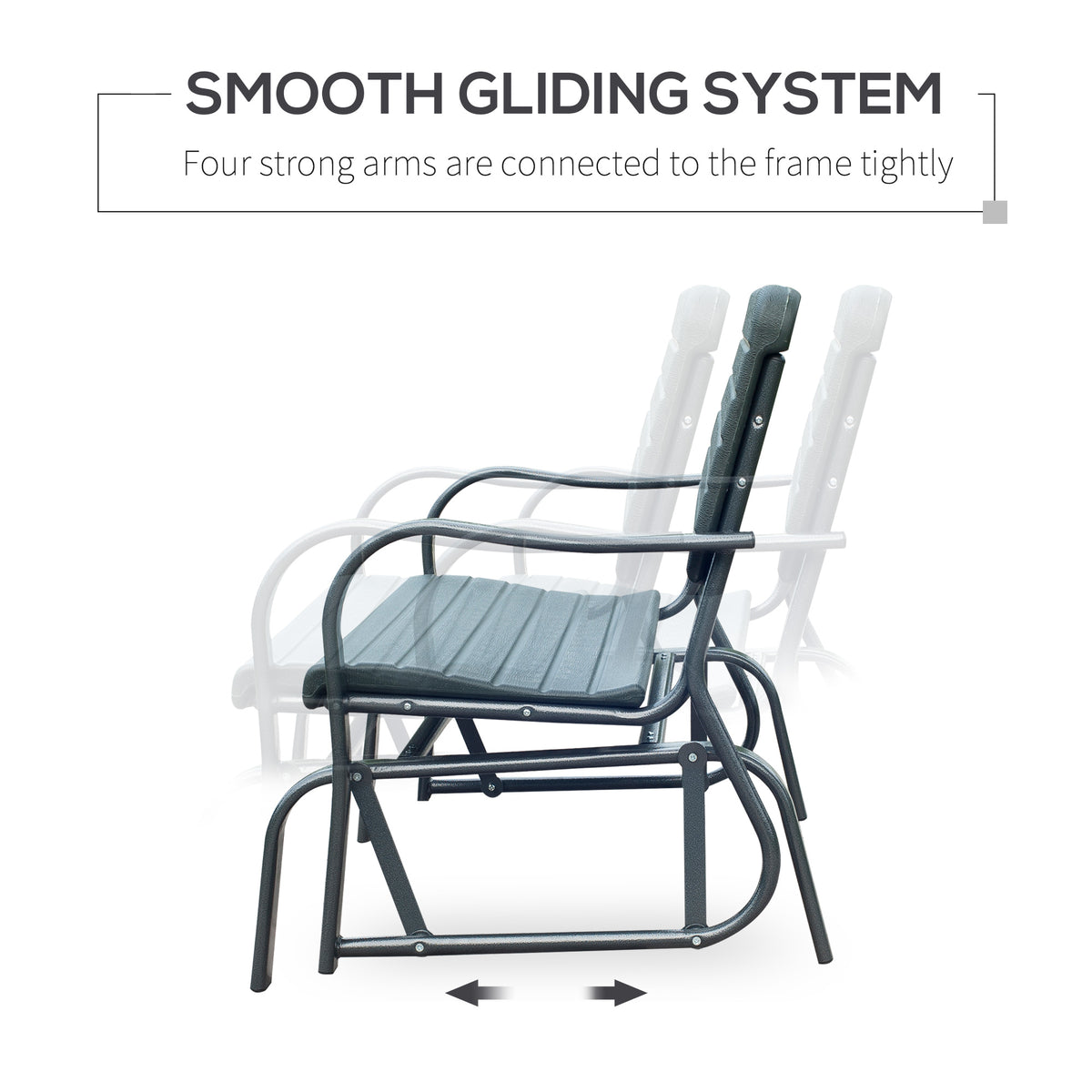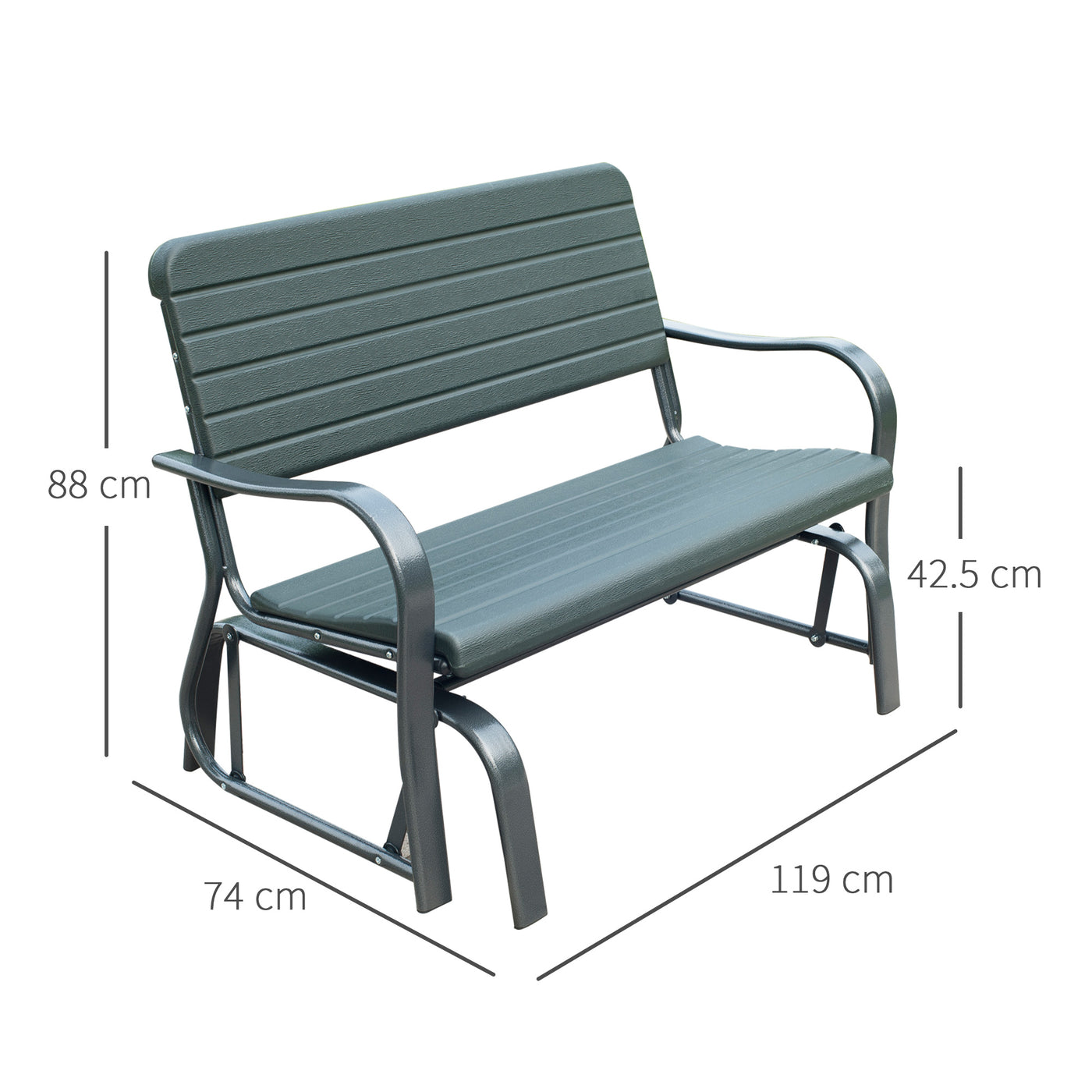 Outsunny 2 Seats Garden Glider Bench, Metal Frame and HDPE Swing Loveseat, Porch Rocking Glider for 2 Person with High Back and Armrest, Dark Green - Deep Green