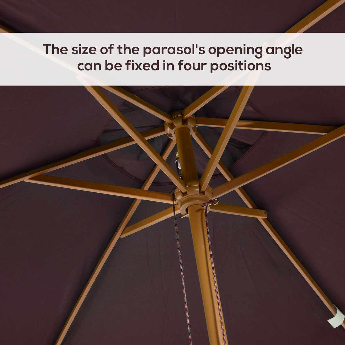 Outsunny 2 x 3m Wooden Garden Parasol Umbrella Outdoor Sun Shade Canopy, Dark Coffee - Brown