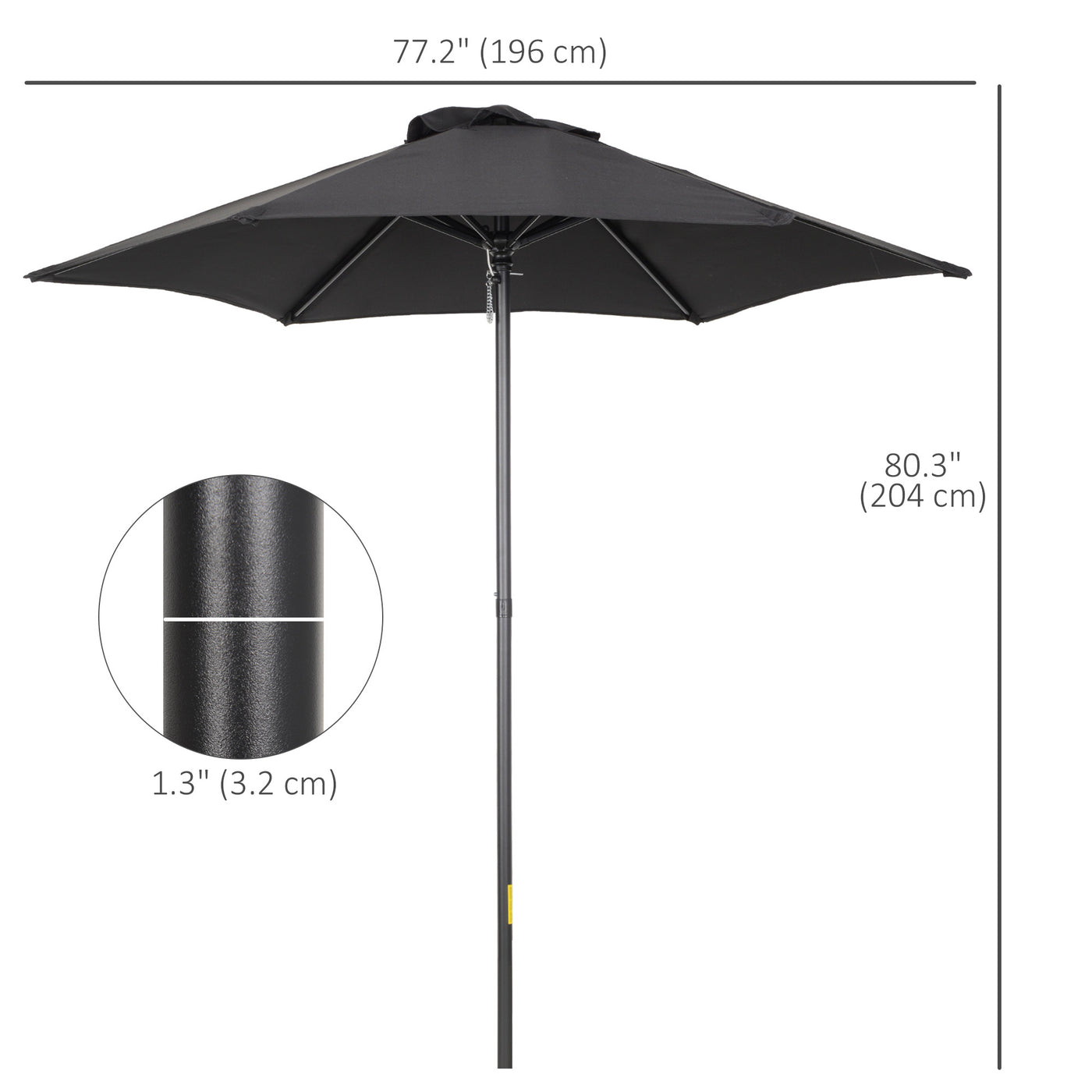 Outsunny 2m Garden Parasol Umbrella, Outdoor Sun Shade with 6 Sturdy Ribs for Balcony, Bench, Garden, Black - Black