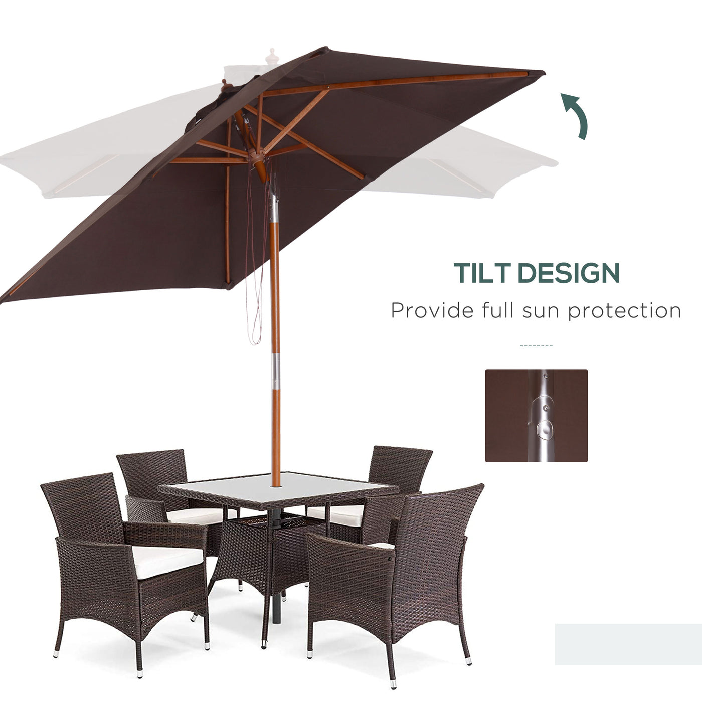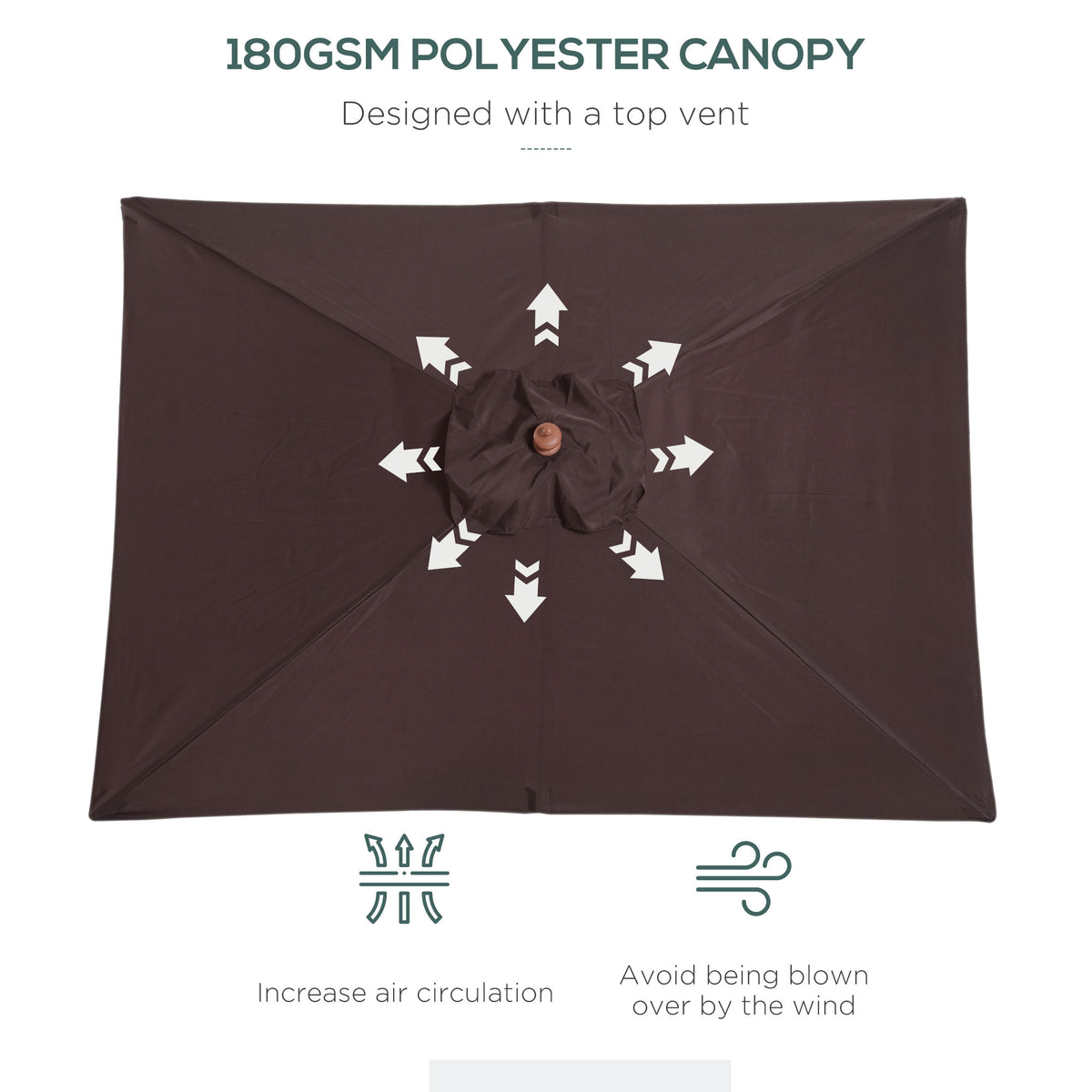 Outsunny 2m x 1.5m Garden Parasol Umbrella with Tilting Sunshade Canopy, Outdoor Market Table Umbrella with Wood and Bamboo Frame, Coffee - Brown