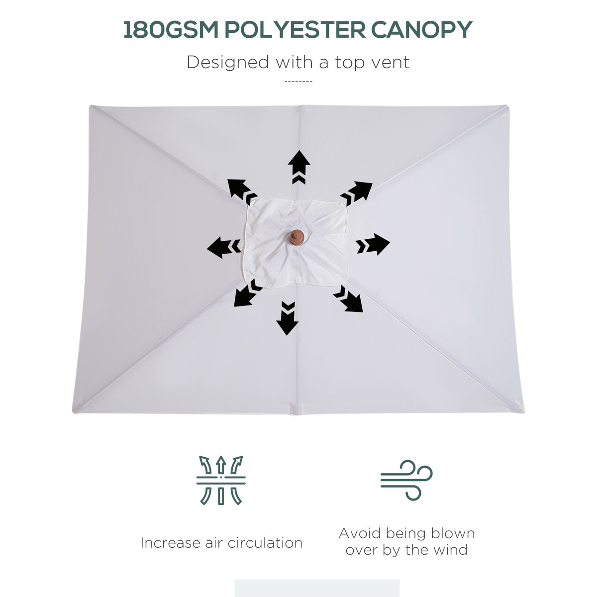 Outsunny 2m x 1.5m Garden Parasol Umbrella with Tilting Sunshade Canopy, Outdoor Market Table Umbrella with Wood and Bamboo Frame, Cream White - Cream White