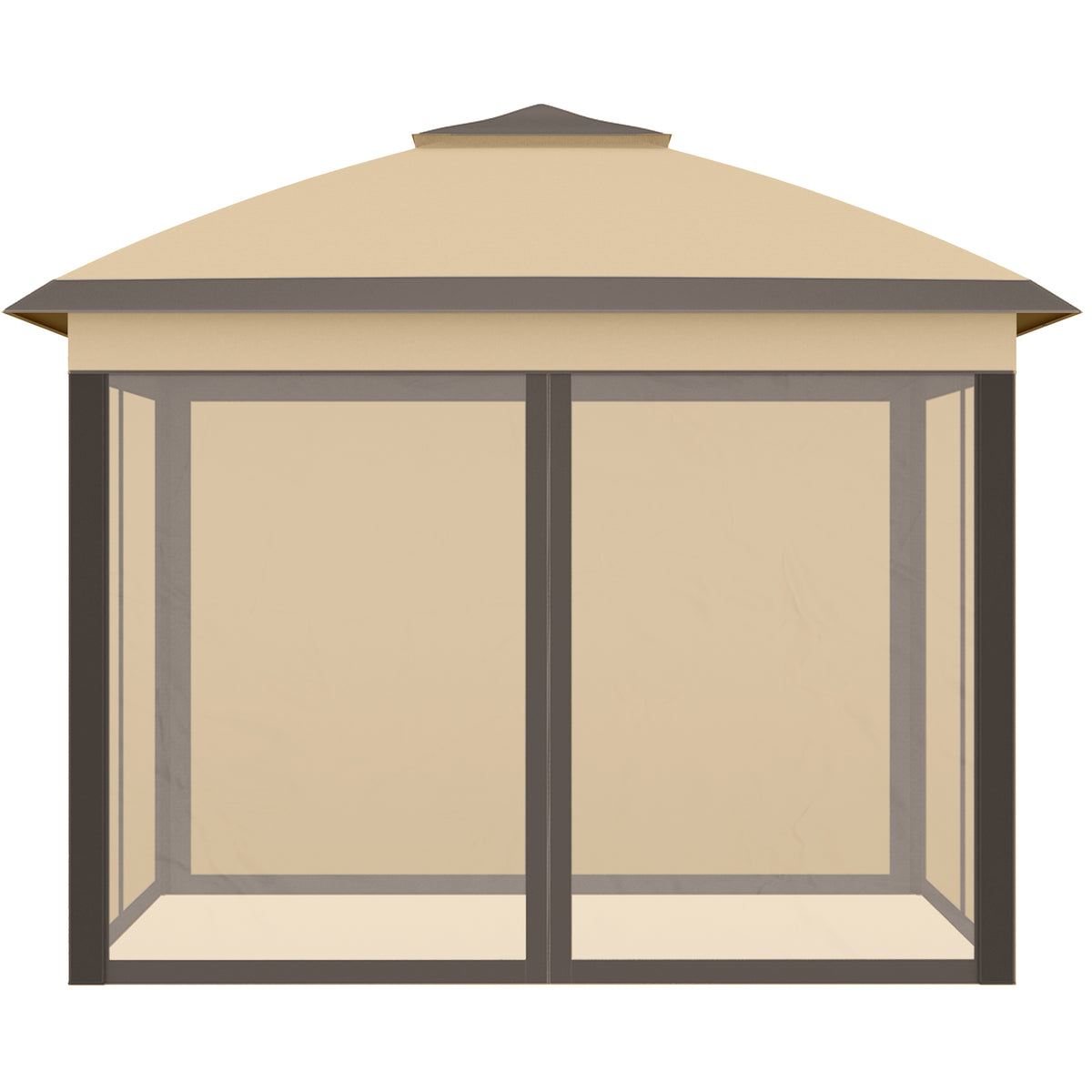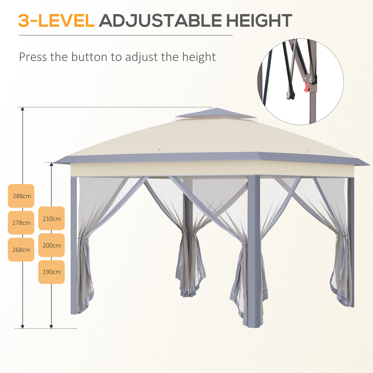Outsunny 3.3 x 3.3m Pop Up Gazebo, Double Roof Foldable Canopy Tent with Zipped Mesh Sidewalls, Height Adjustable and Carrying Bag, Event Tent for Patio Garden, Beige - Beige