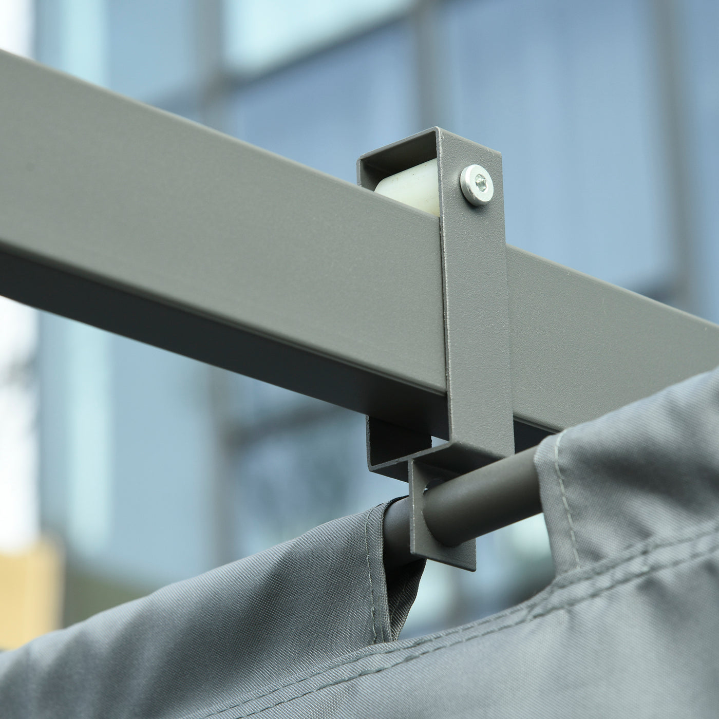 Outsunny 3.6 x 3(m) Outdoor Pergola with Retractable Roof and Curtains, Garden Gazebo Canopy Sun Shade Shelter with Aluminum Frame, Dark Grey - Dark Grey