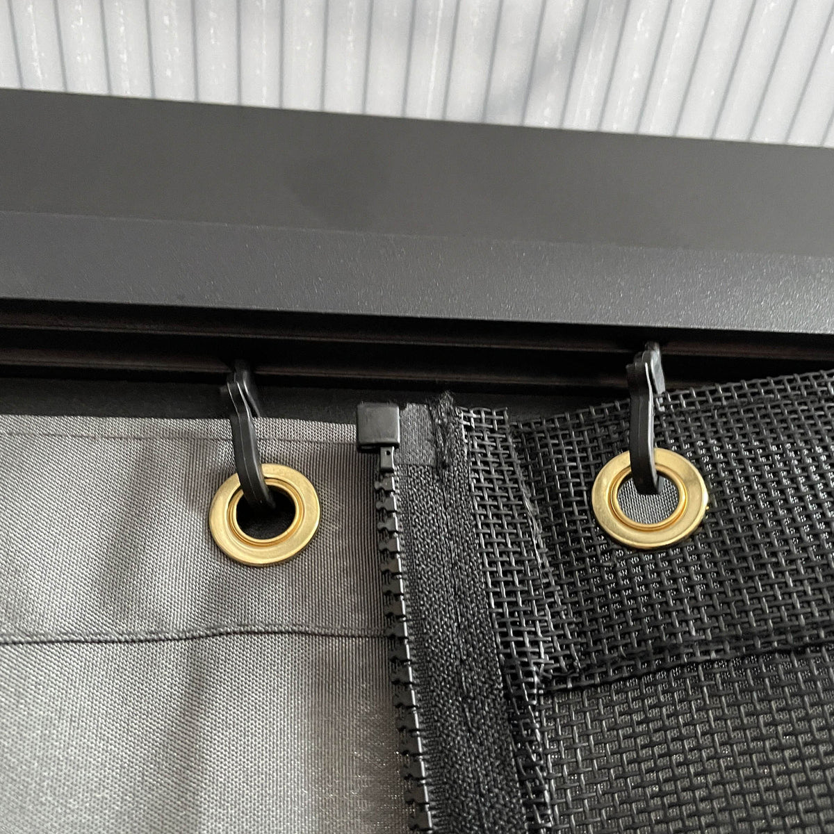 Outsunny 3.6 x 4m Hardtop Gazebo Canopy with Polycarbonate Roof, Aluminium Frame, Permanent Pavilion Garden Gazebo with Netting and Curtains for Patio, Deck, Dark Grey - Black