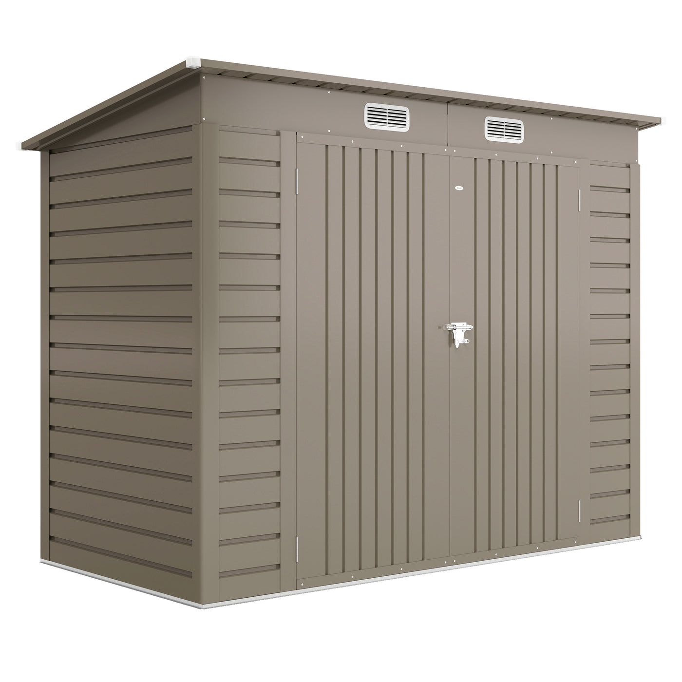 Outsunny 3.7 x 7.9ft Galvanised Steel Shed, with Latched Door and Padlock - Light Grey - Light Grey