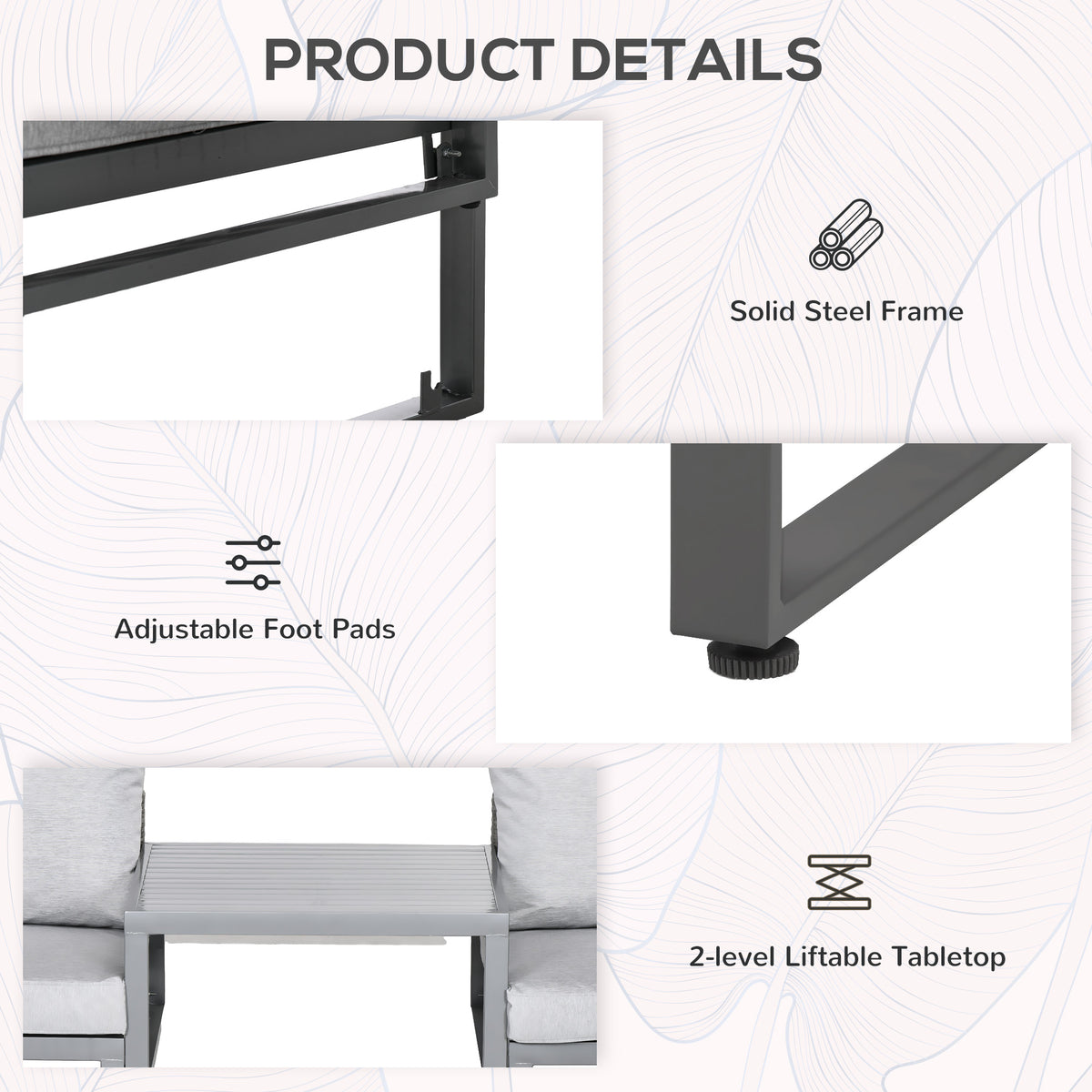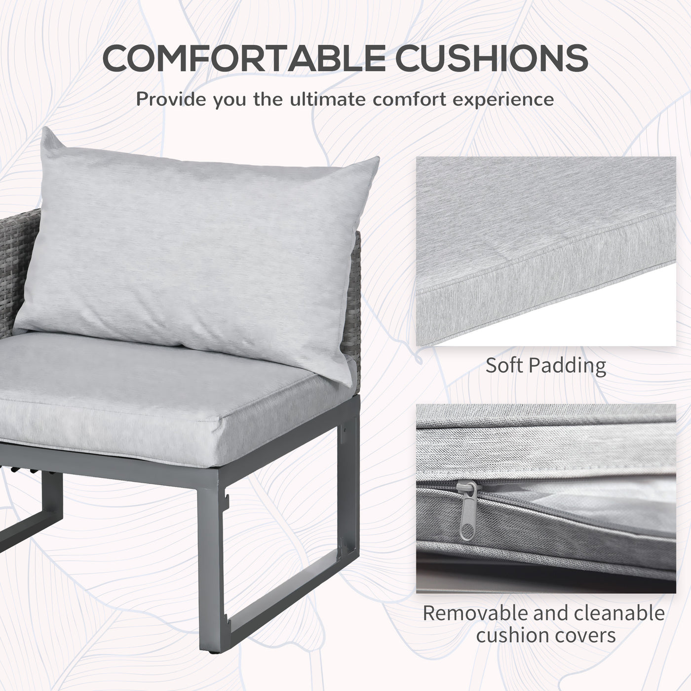 Outsunny 3-in-1 Rattan Bistro Set, Wicker Garden Furniture Set with 2-level Rising Table, Adjustable 3-seater Sofa Lounger with Washable Cushions for Outdoor, Patio, Balcony, Grey - Grey