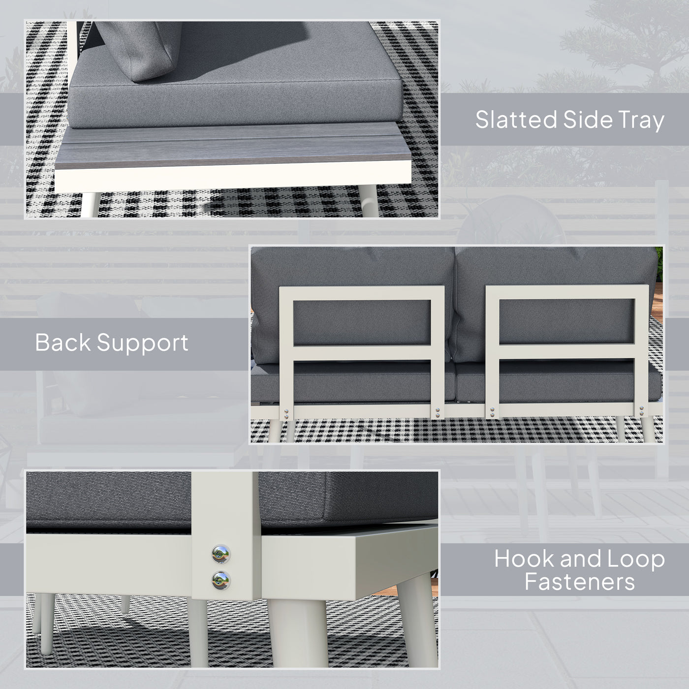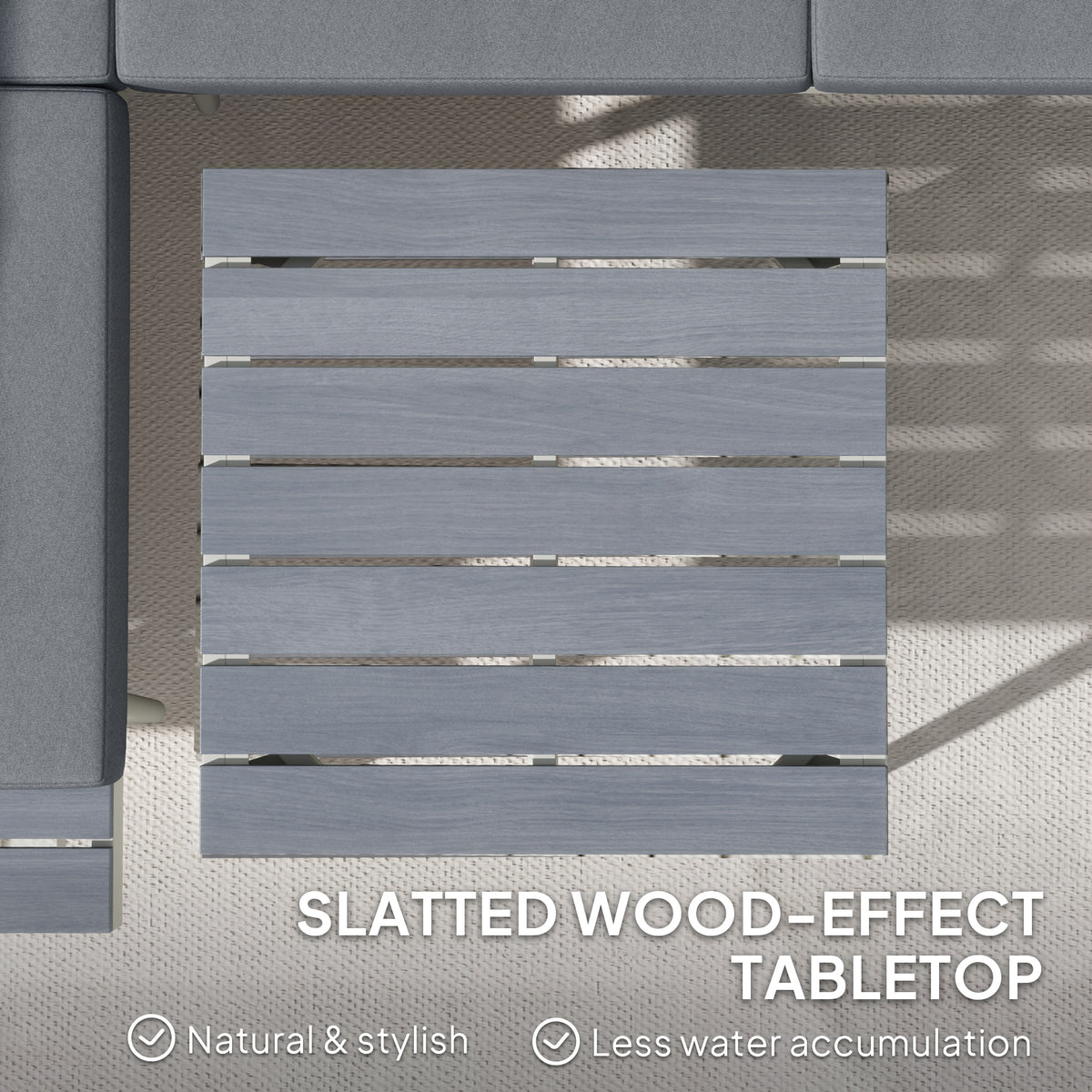 Outsunny 3 Piece Garden Furniture Set with 5-Level Adjustable Lounger, L Shaped Garden Corner Sofa with Cushions, Mesh Seat, Slatted Wood-Grain Table, Outdoor Furniture Set for Conservatory, Grey