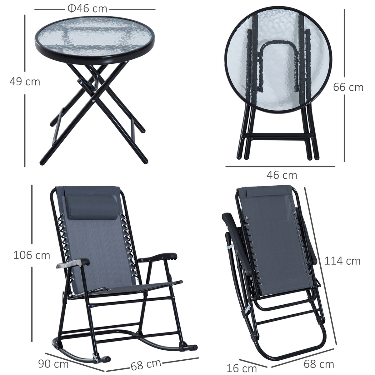 Outsunny 3 Piece Outdoor Rocking Set with 2 Folding Chairs and 1 Tempered Glass Table, Patio Bistro Set for Garden, Deck, Grey - Grey