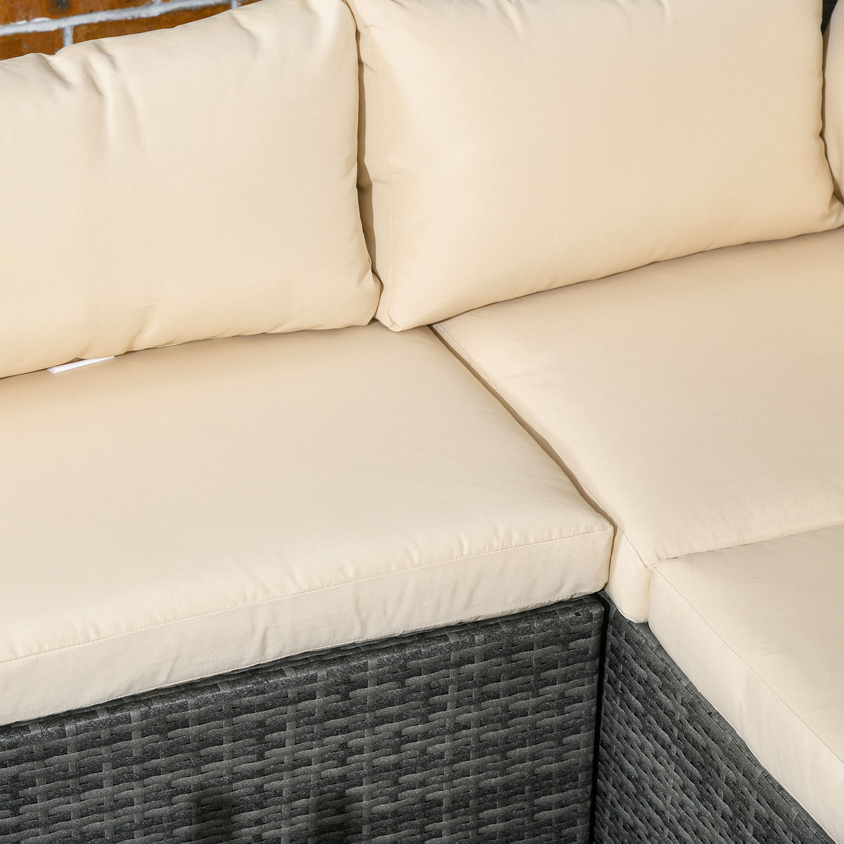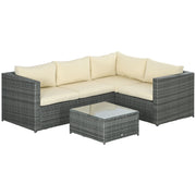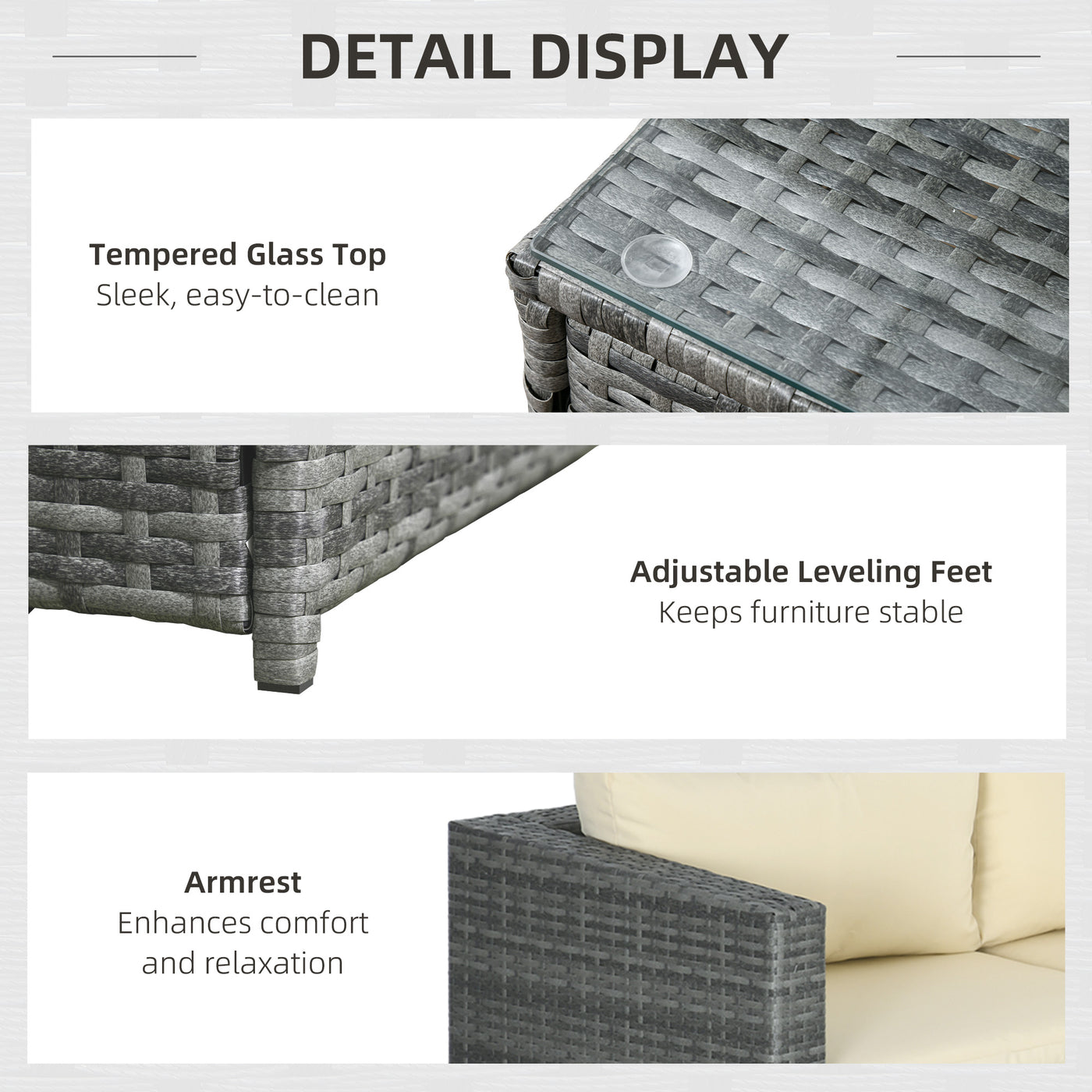 Outsunny 3 Pieces PE Rattan Garden Furniture Set with 10 cm Thick Cushions, 4 Seater Garden Corner Sofa Set with Glass Top Coffee Table, Outdoor Furniture for Patio, Porch, Beige - Beige