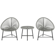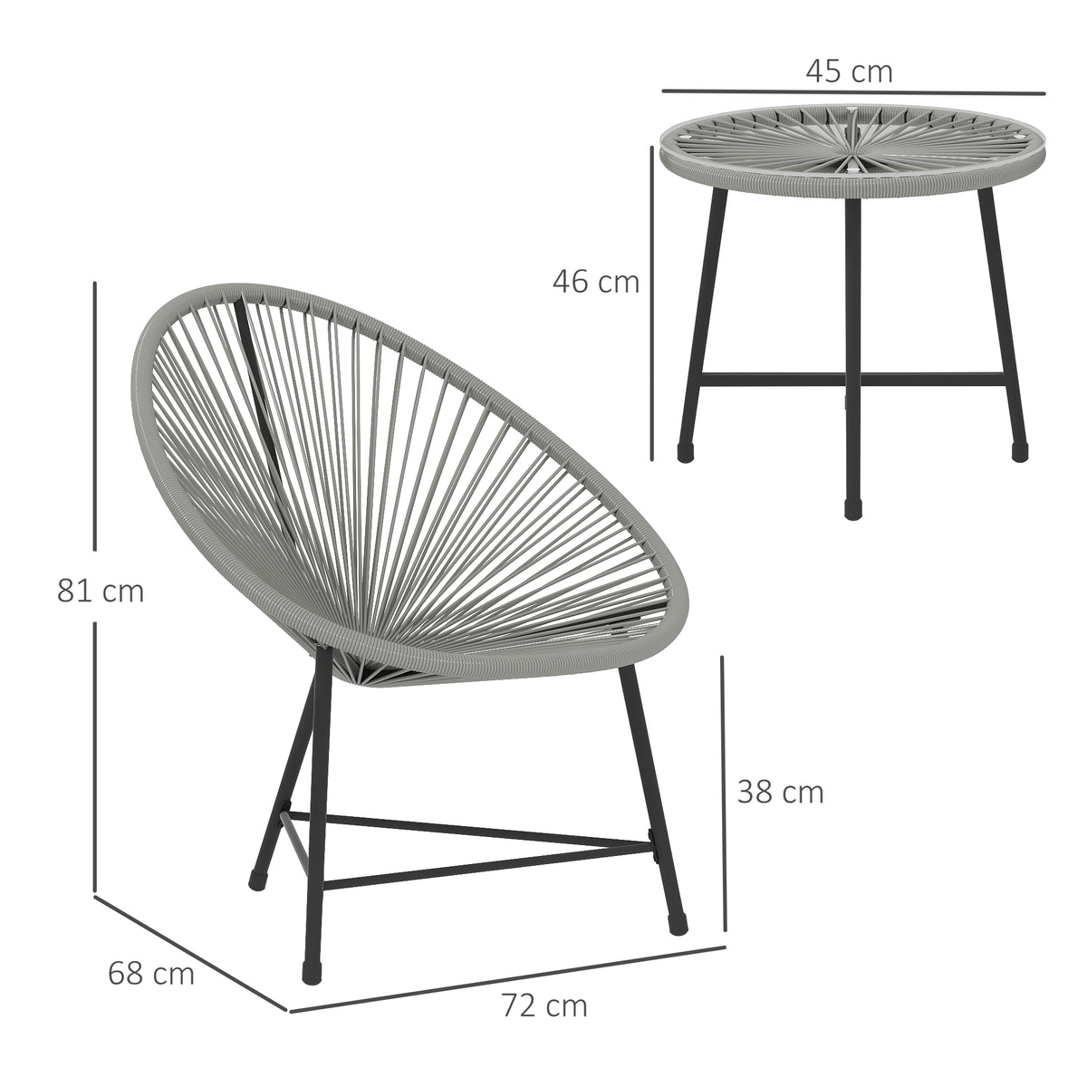 Outsunny 3 Pieces Rattan Bistro Set, Garden Bistro Set with Acapulco Chairs and Glass Top Table, Small Garden Furniture Set with Reinforced Metal Frame for Outdoor, Patio, Balcony, Grey - Grey