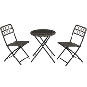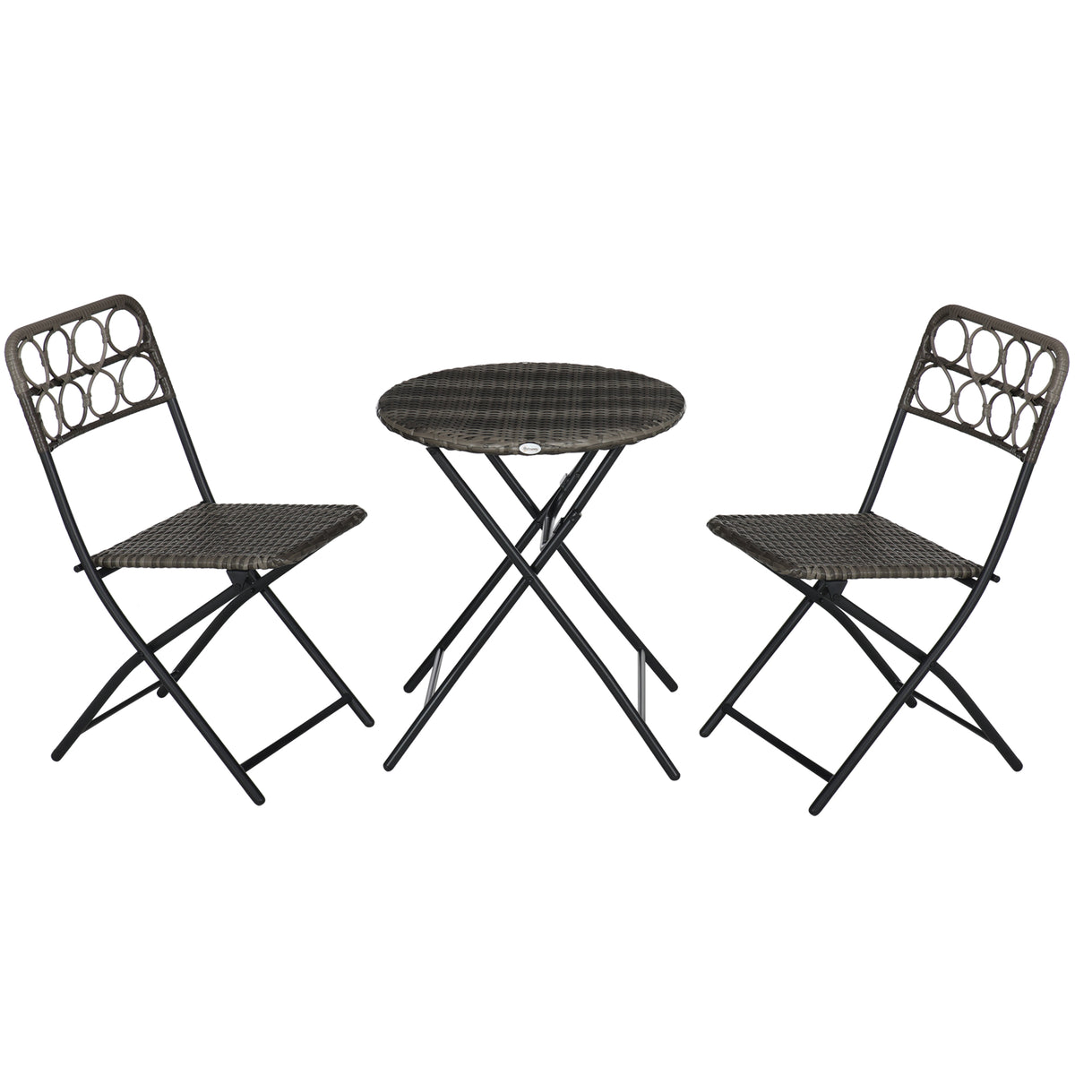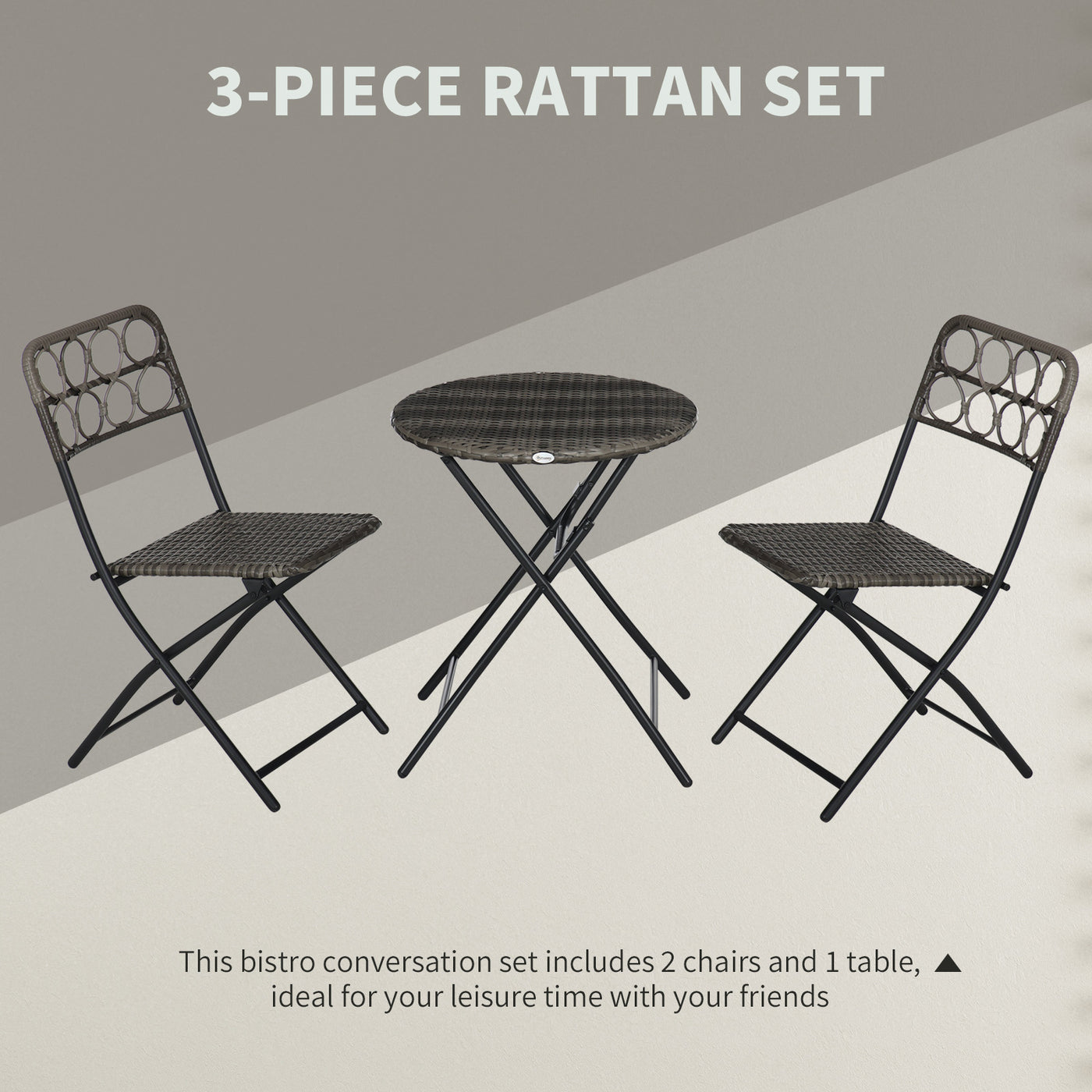 Outsunny 3 Pieces Rattan Bistro Set, Wicker Folding Garden Furniture Set with Coffee Table and Chairs for Outdoor, Patio, Balcony, Grey - Grey
