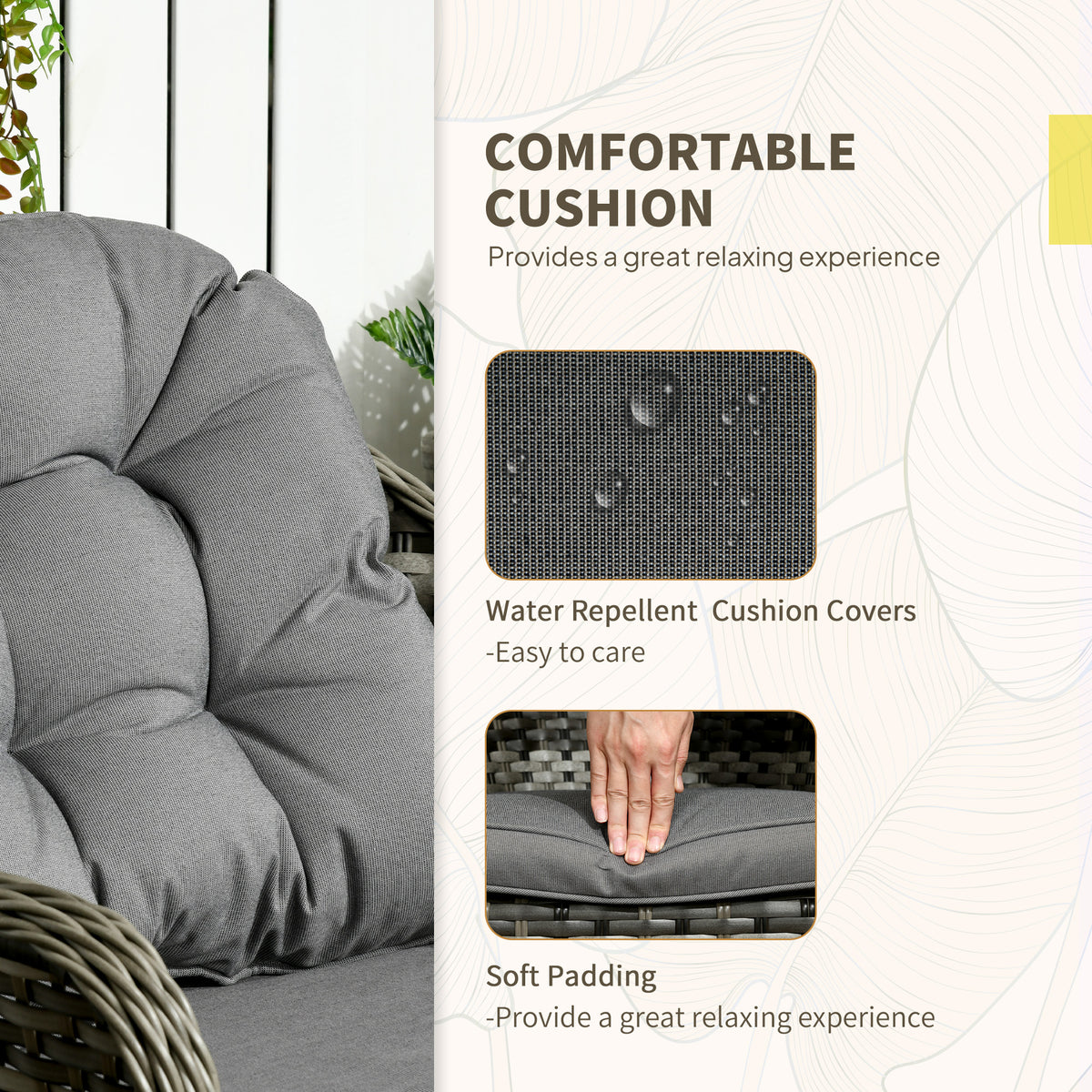 Outsunny 3 Pieces Rattan Bistro Set, Wicker Garden Bistro Set, Glass Top Balcony Table and Chairs with Cushions for Outdoor, Patio, Balcony, Grey - Grey