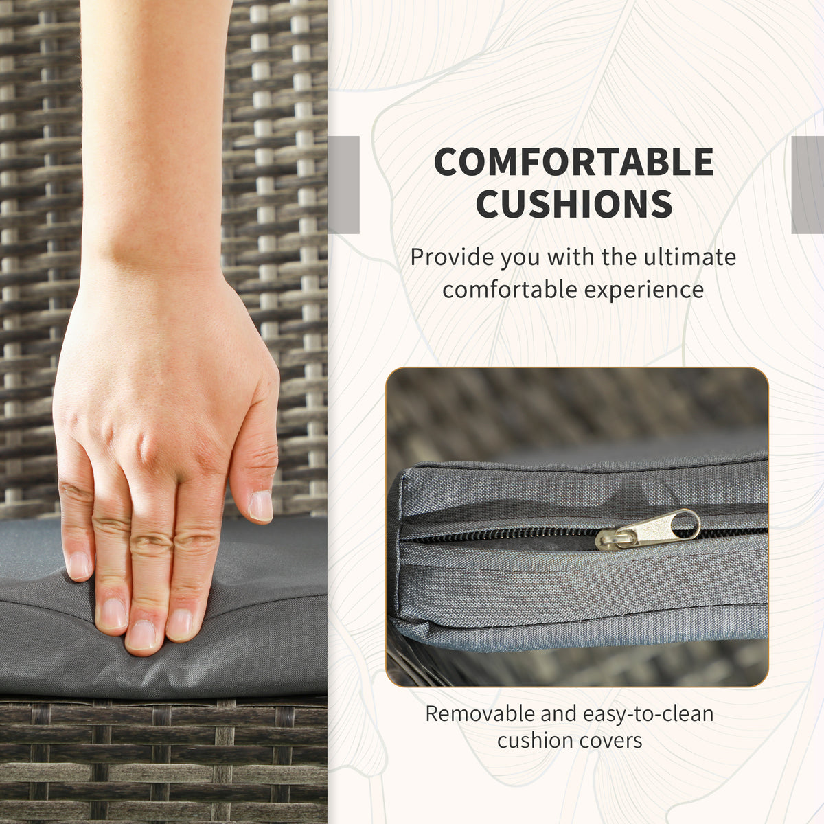 Outsunny 3 Pieces Rattan Bistro Set, Wicker Garden Furniture Set with Glass Top Coffee Table and Chairs, Washable Cushions for Outdoor, Patio, Balcony, Mixed Grey - Grey