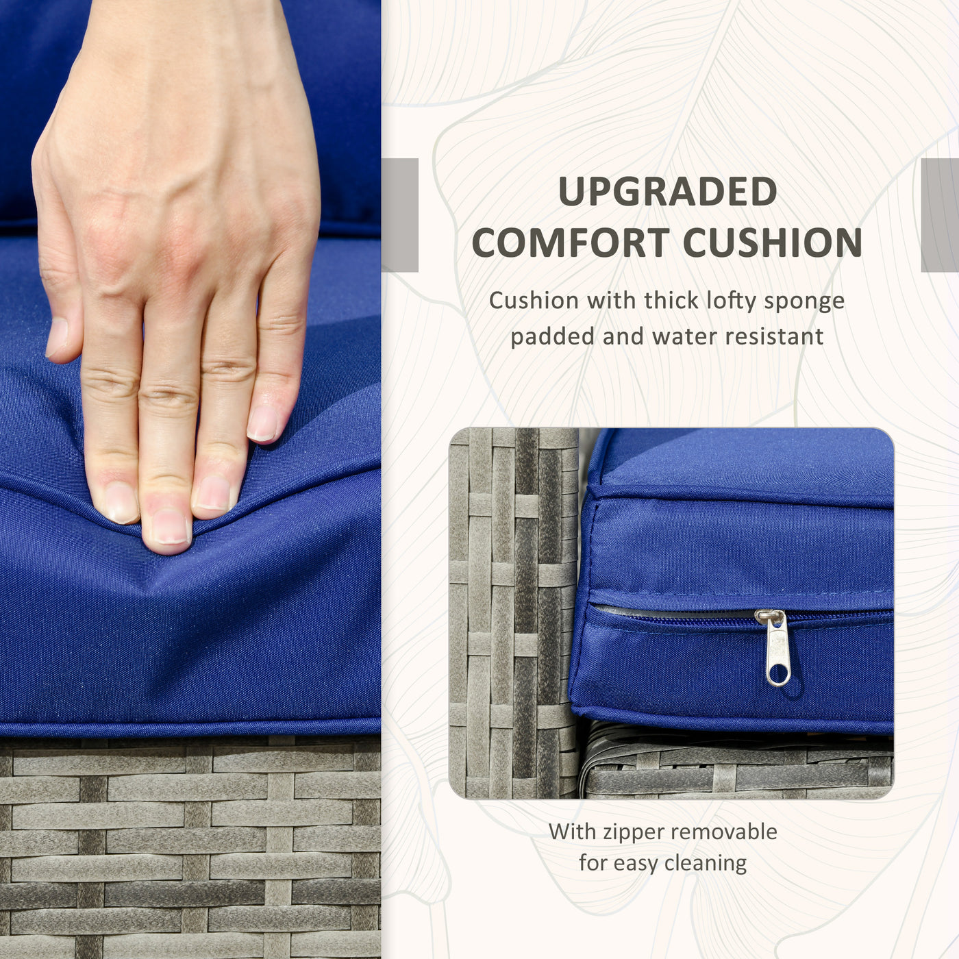 Outsunny 3 Pieces Rattan Bistro Set, Wicker Garden Furniture Set with Storage Coffee Table and Chairs, Thickened Cushions for Outdoor, Patio, Balcony, Blue - Blue