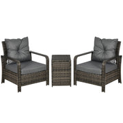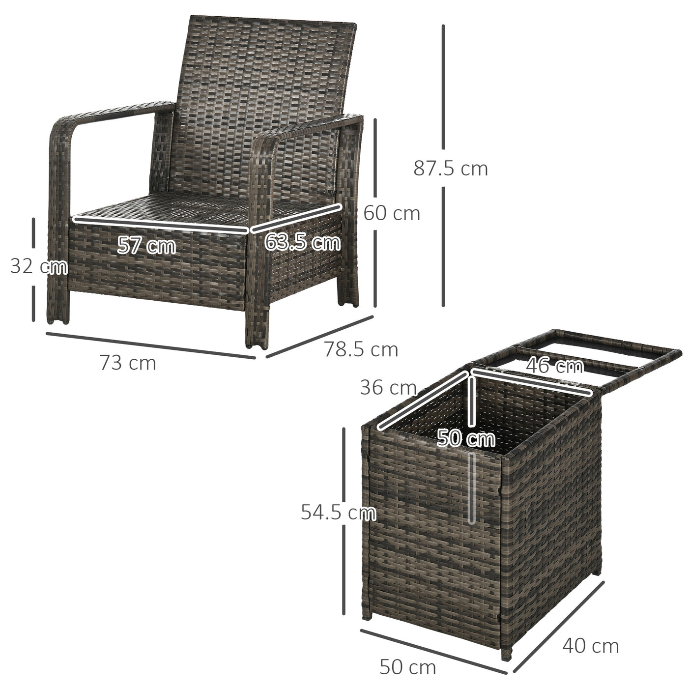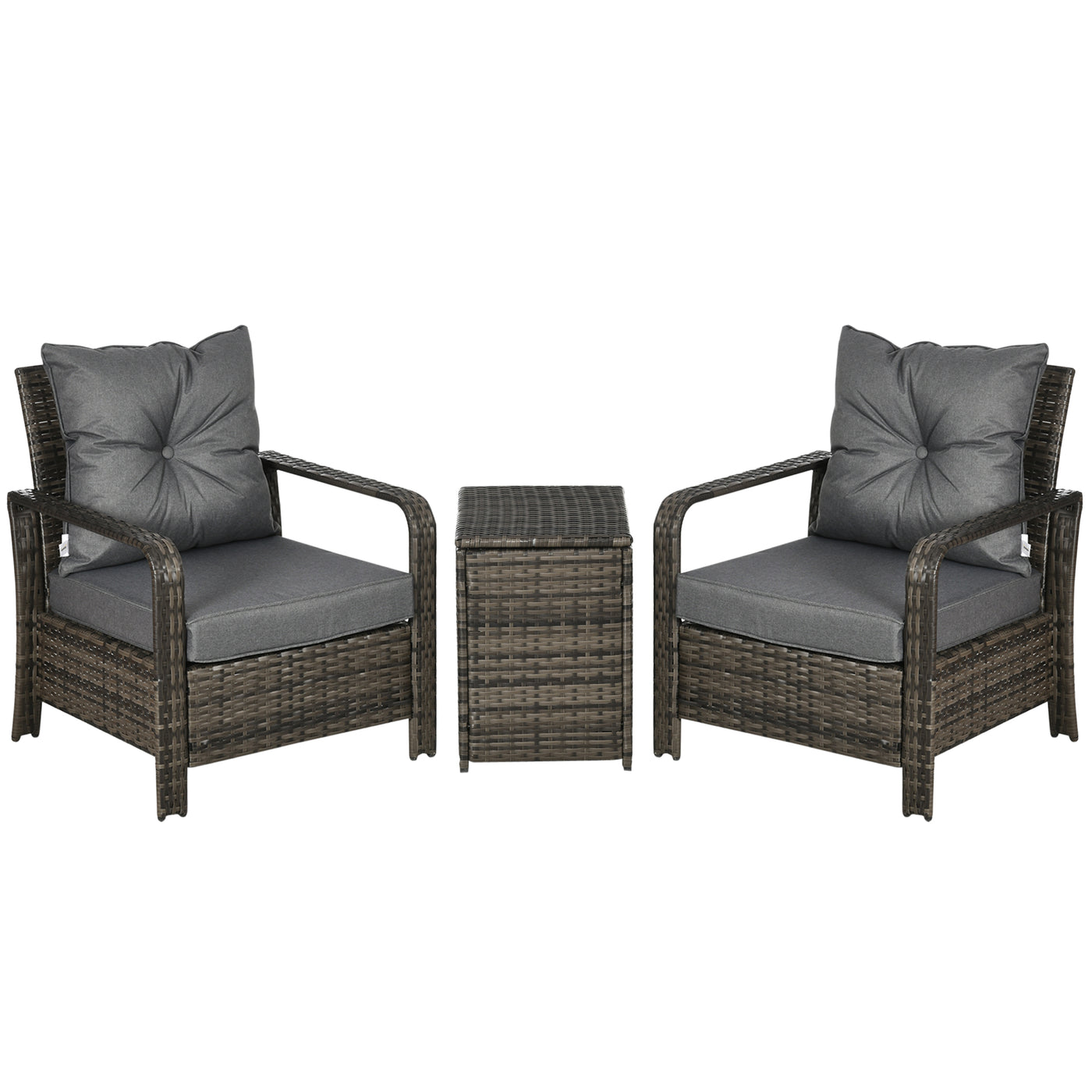 Outsunny 3 Pieces Rattan Bistro Set, Wicker Garden Furniture Set with Storage Coffee Table and Chairs, Thickened Cushions for Outdoor, Patio, Balcony, Grey - Grey